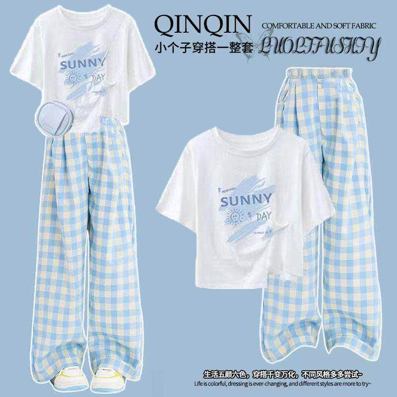 又酷又飒蓝色格子裤 套装 女装 韩系一整套ootd穿搭减龄多巴胺夏季