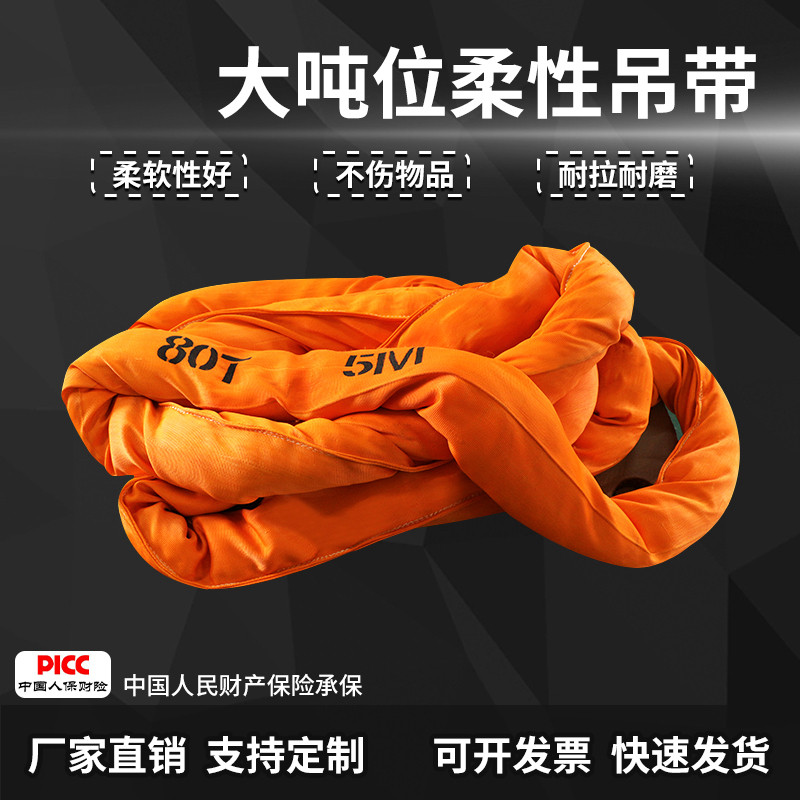 定制大吨位柔性吊装 带起重工业吊带 带20吨30吨50吨双扣环型软吊装