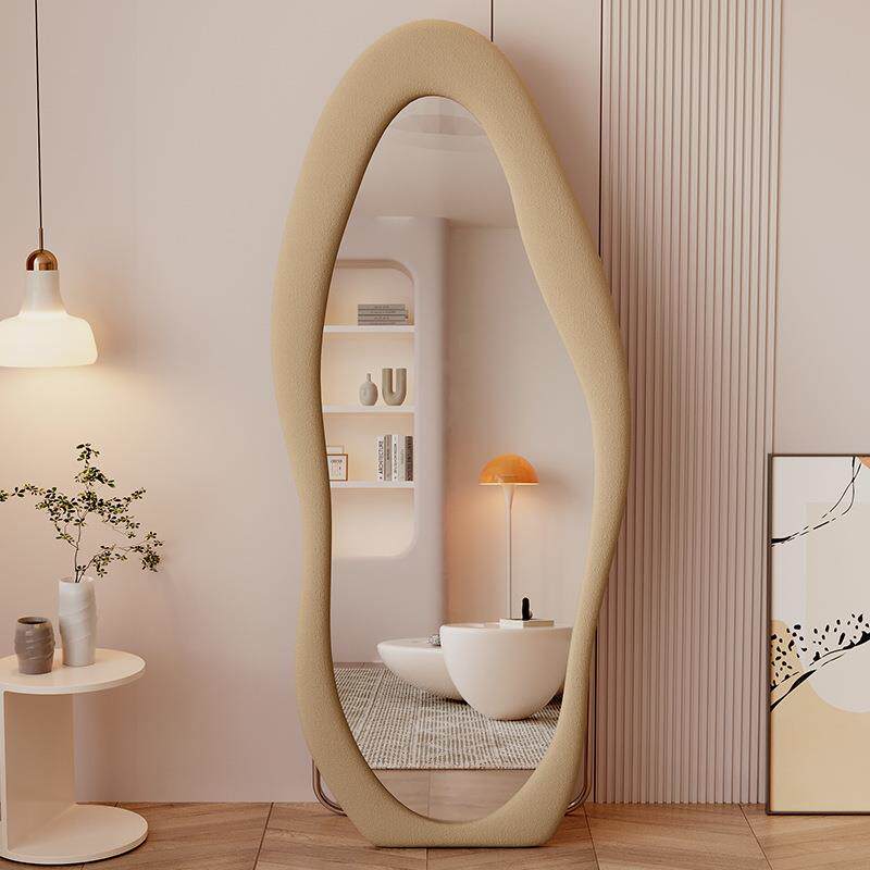 约网红穿衣用镜家卧室挂墙全身镜民宿绒云绒布云朵朵试衣镜奶油风