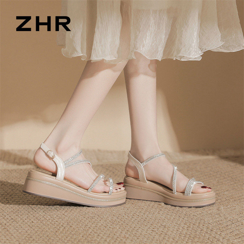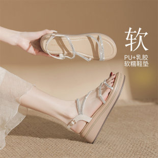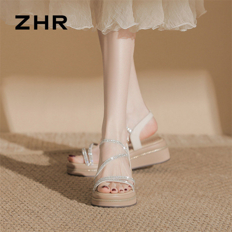 外穿厚底增高仙女风水钻罗马鞋 新款 配裙子 女2026夏季 ZHR坡跟凉鞋