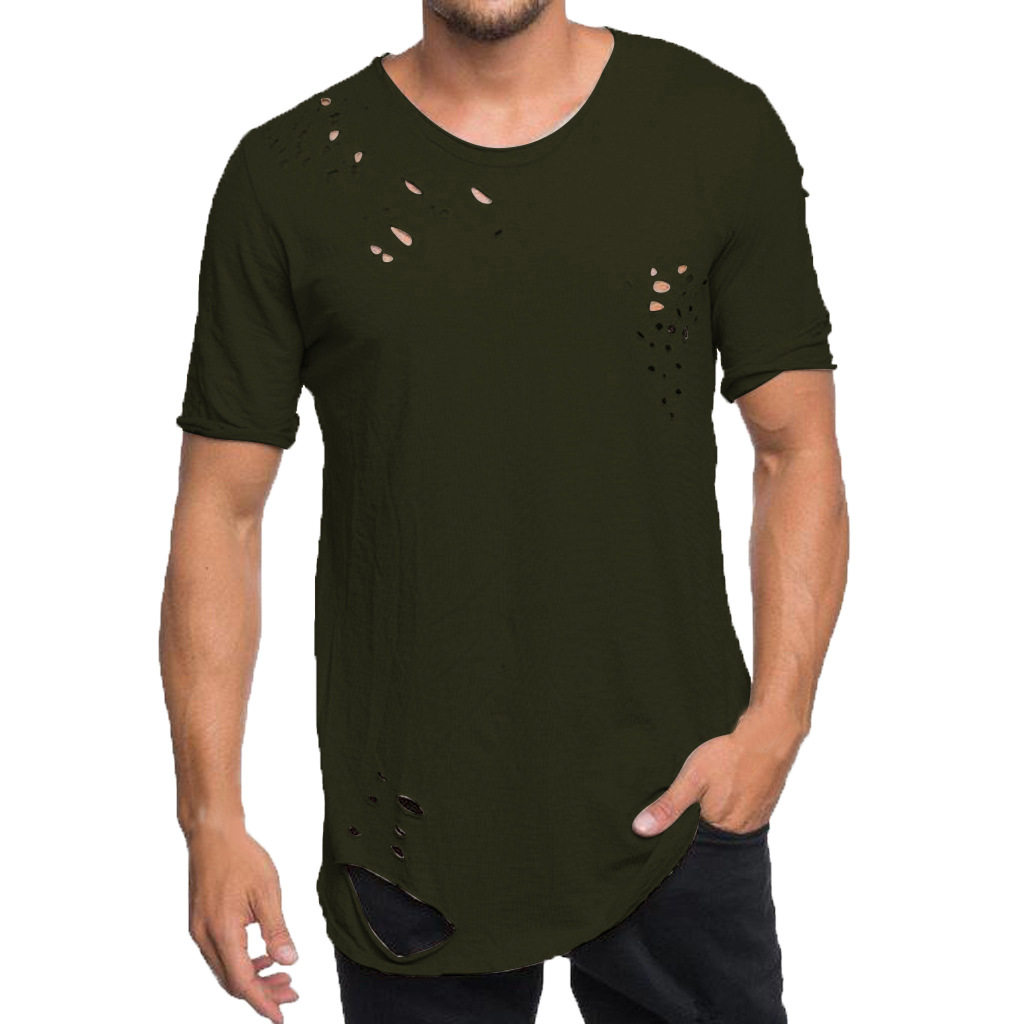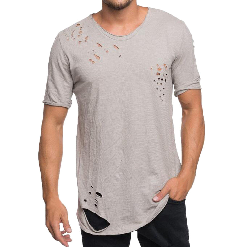 Short 上衣 Personality 短袖 Top Sleeve Neck Crew Ripped Men