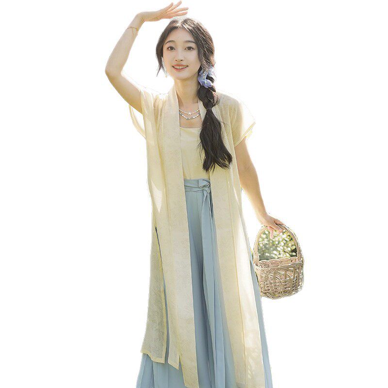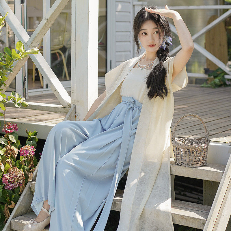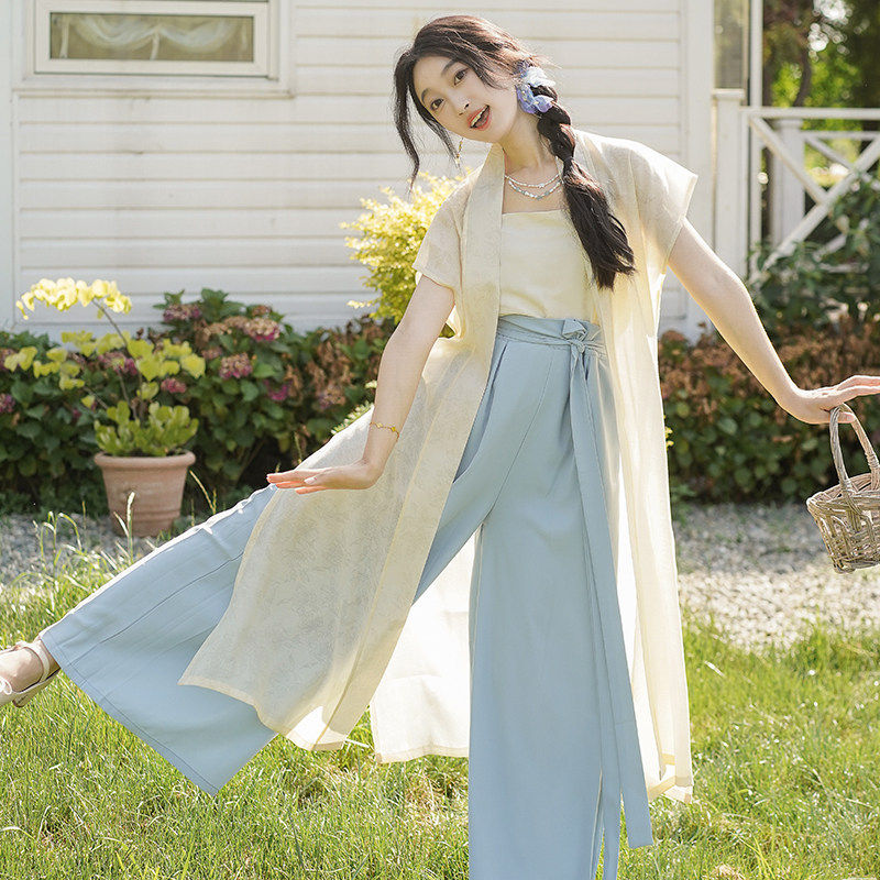素通勤阔腿裤 宋制背心汉元 汉服女 改良蓝色宋裤 洛竹沁夏原创夏季