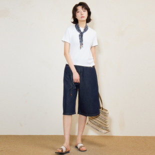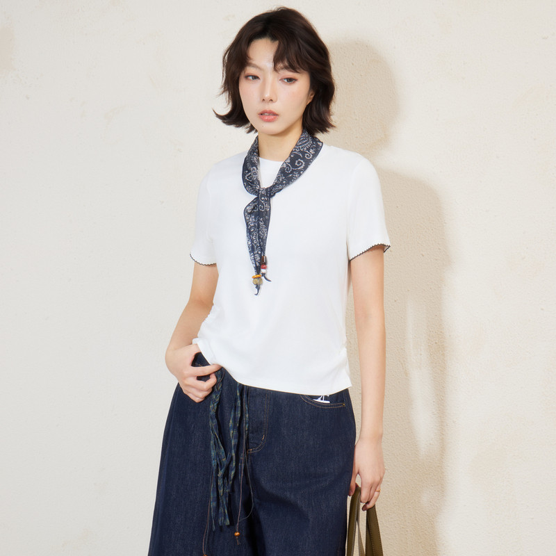 含丝巾 西町村屋简约短袖 百搭圆领T恤 新款 XHBB10130 女2026夏季