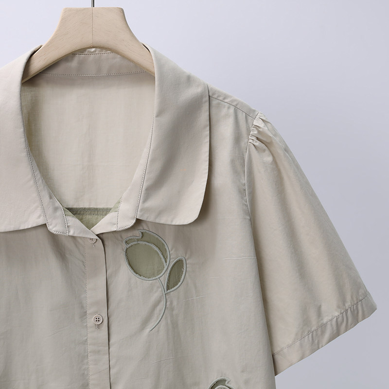 女装 春日郁金香短袖 衬衫 时尚 胖mm大码 夏季 撞色拼接小衫 胖佳佳