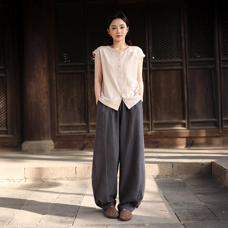裤 棉麻女装 子宽松百搭苎麻休闲裤 新中式 文艺潮 2026春季 直筒裤 新款