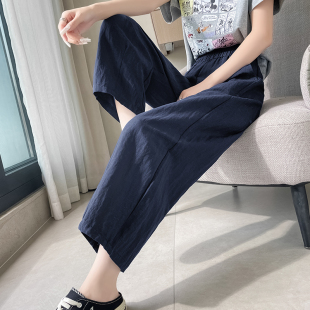 棉麻女裤 防晒抗皱休闲九分弯九裤 2026新款 夏季 高腰显瘦阔腿裤 大码