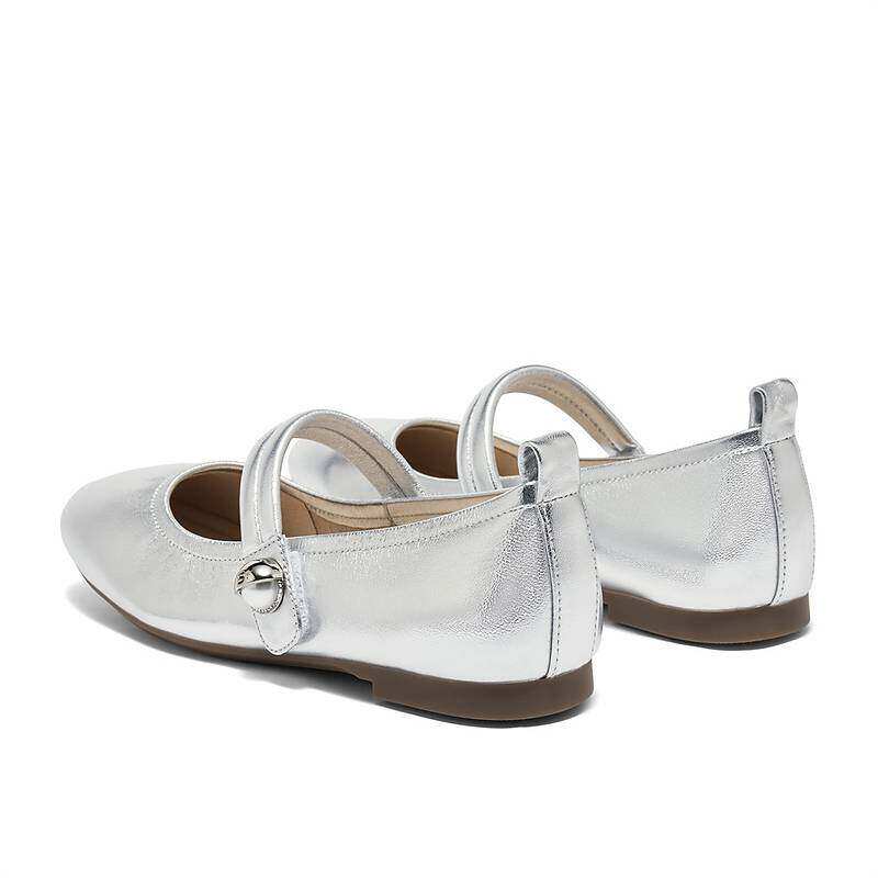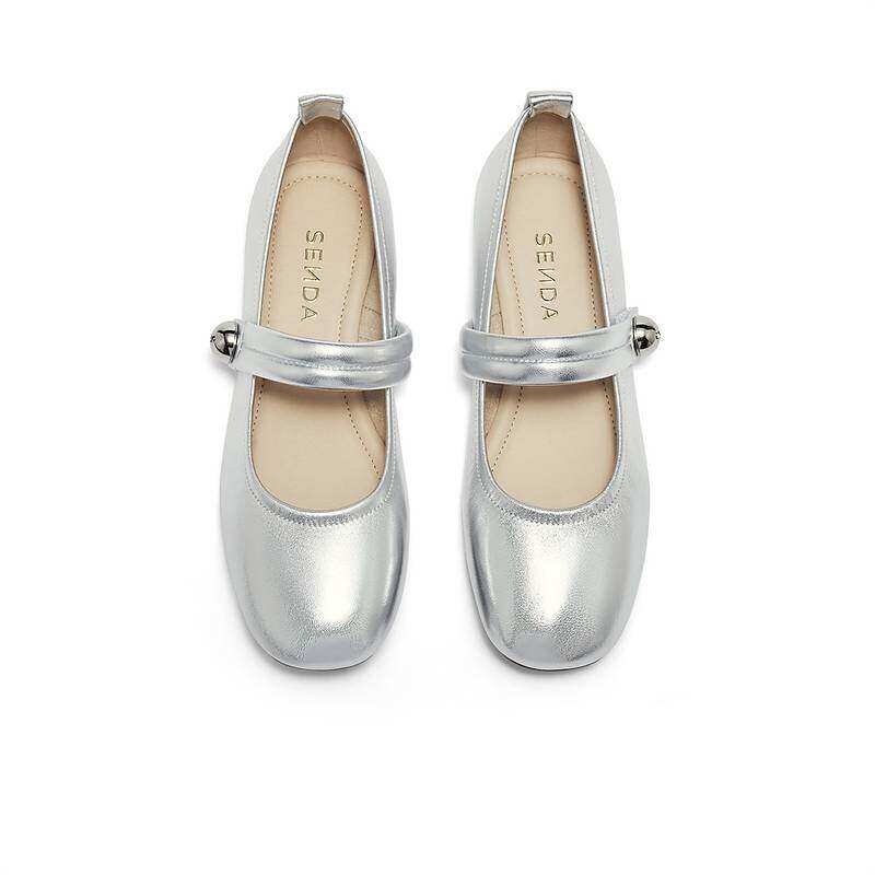 晚晚单鞋 森达银色玛丽珍鞋 秋软面平底小皮鞋 2024新款 XAH01CQ4 女鞋