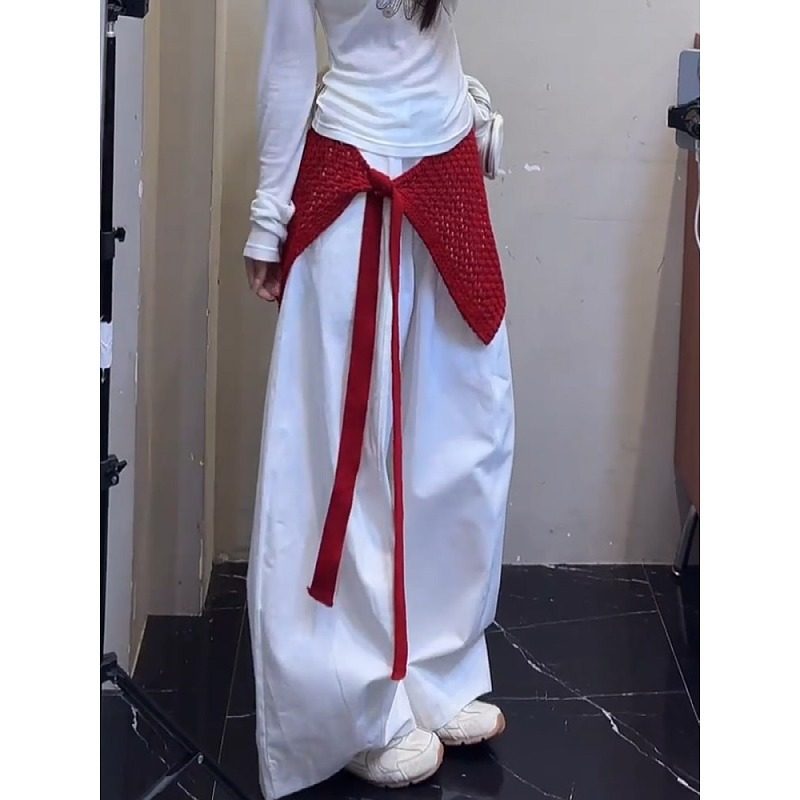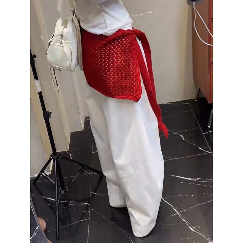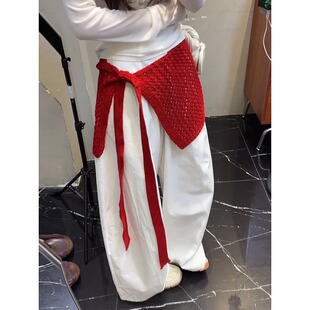 大码 显瘦叠穿百搭针织裙子 辣妹镂空系带红色屁帘半身裙女2026新款