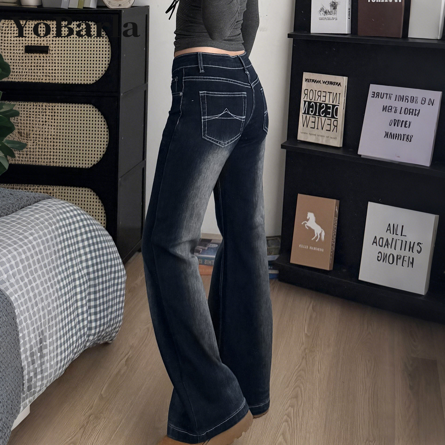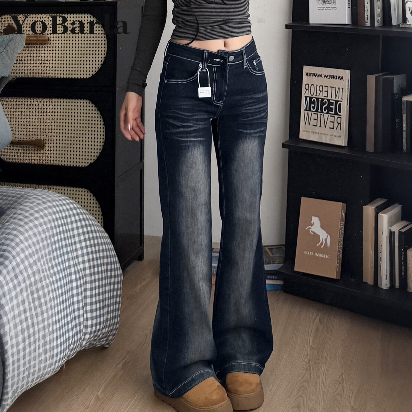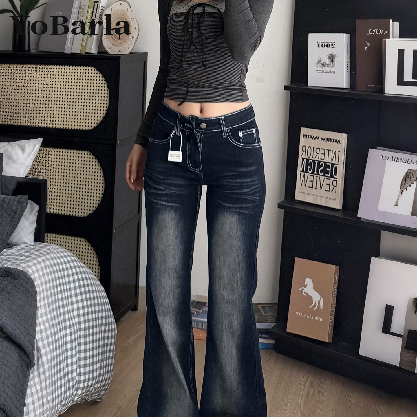 复古微喇牛仔裤 胖mm梨型身材显瘦弹力马蹄裤 女春季 大码 子 新款 美式