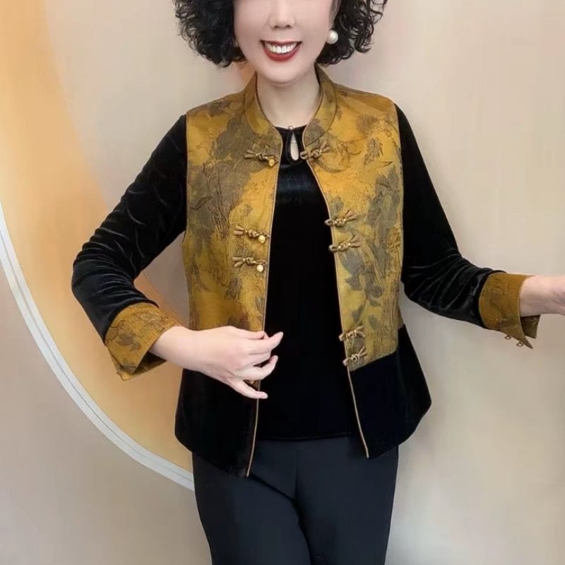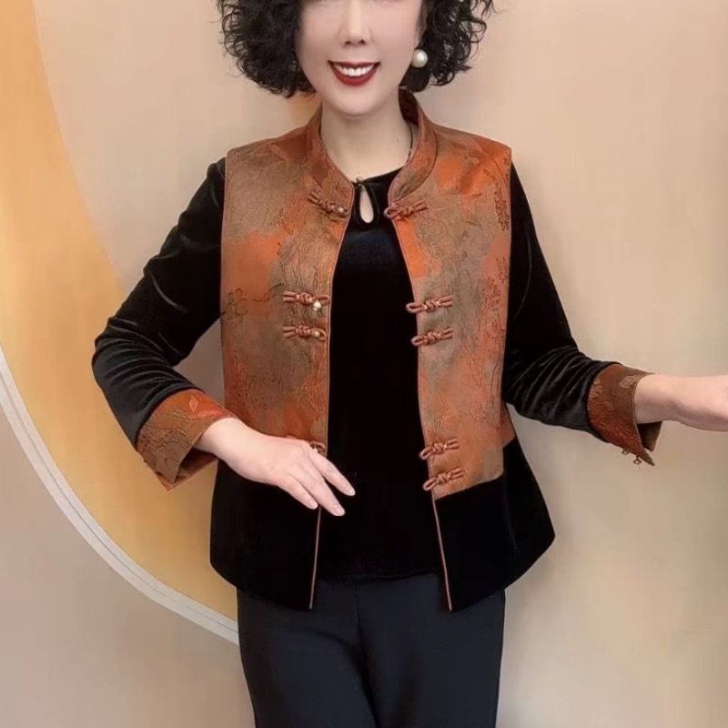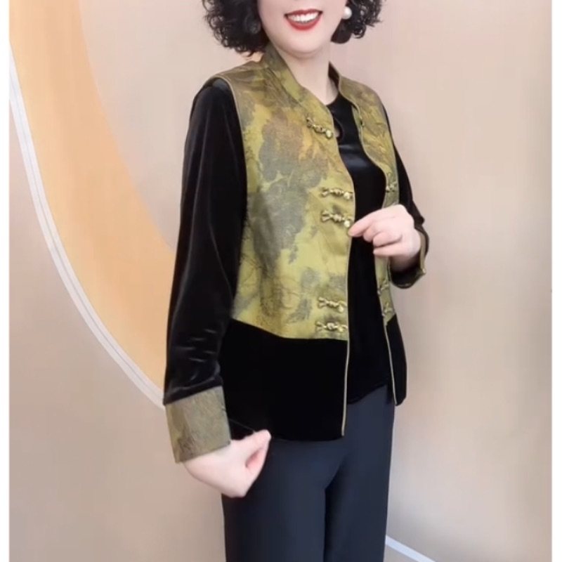 秋冬国风金丝绒上衣马甲两件套女 中老年女装 喜婆婆新中式 妈妈套装