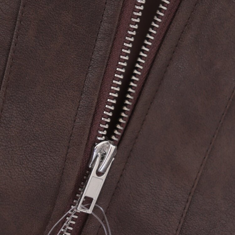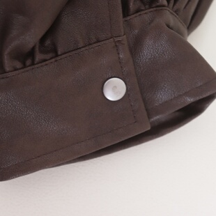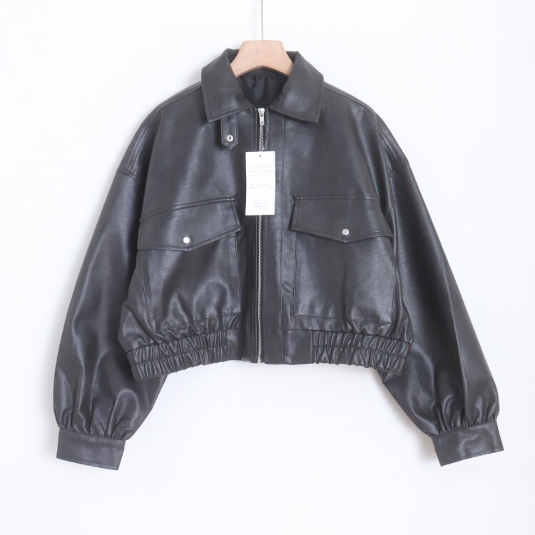 D15073日单新款 休闲PU皮衣外套 客供料翻边领拉链宽松女纯色短款