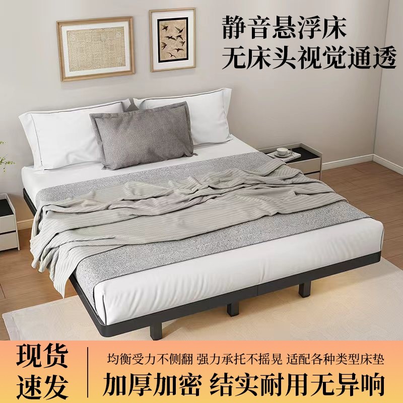 加厚铁艺床双人无床头悬浮床现代简约小户型可拆卸中古风金属床架