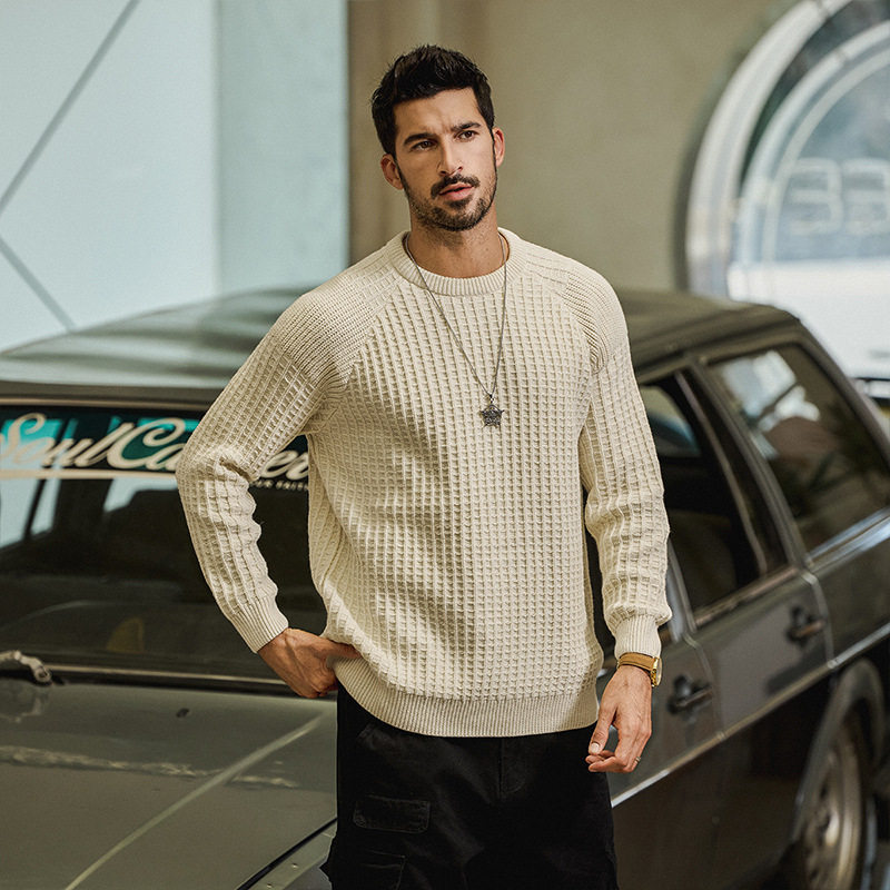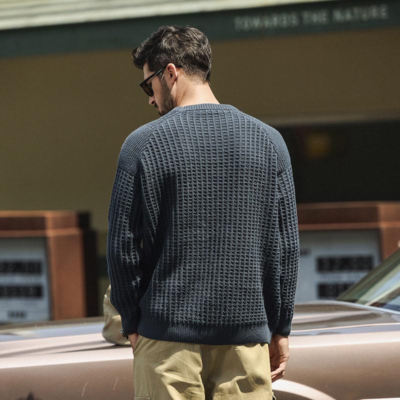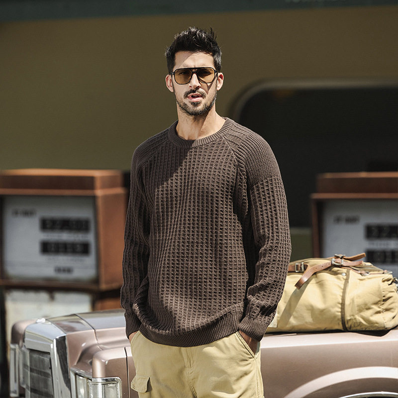 宽松休闲长袖 男款 毛衣2025秋季 新款 上衣潮 美式 男士 复古圆领针织衫