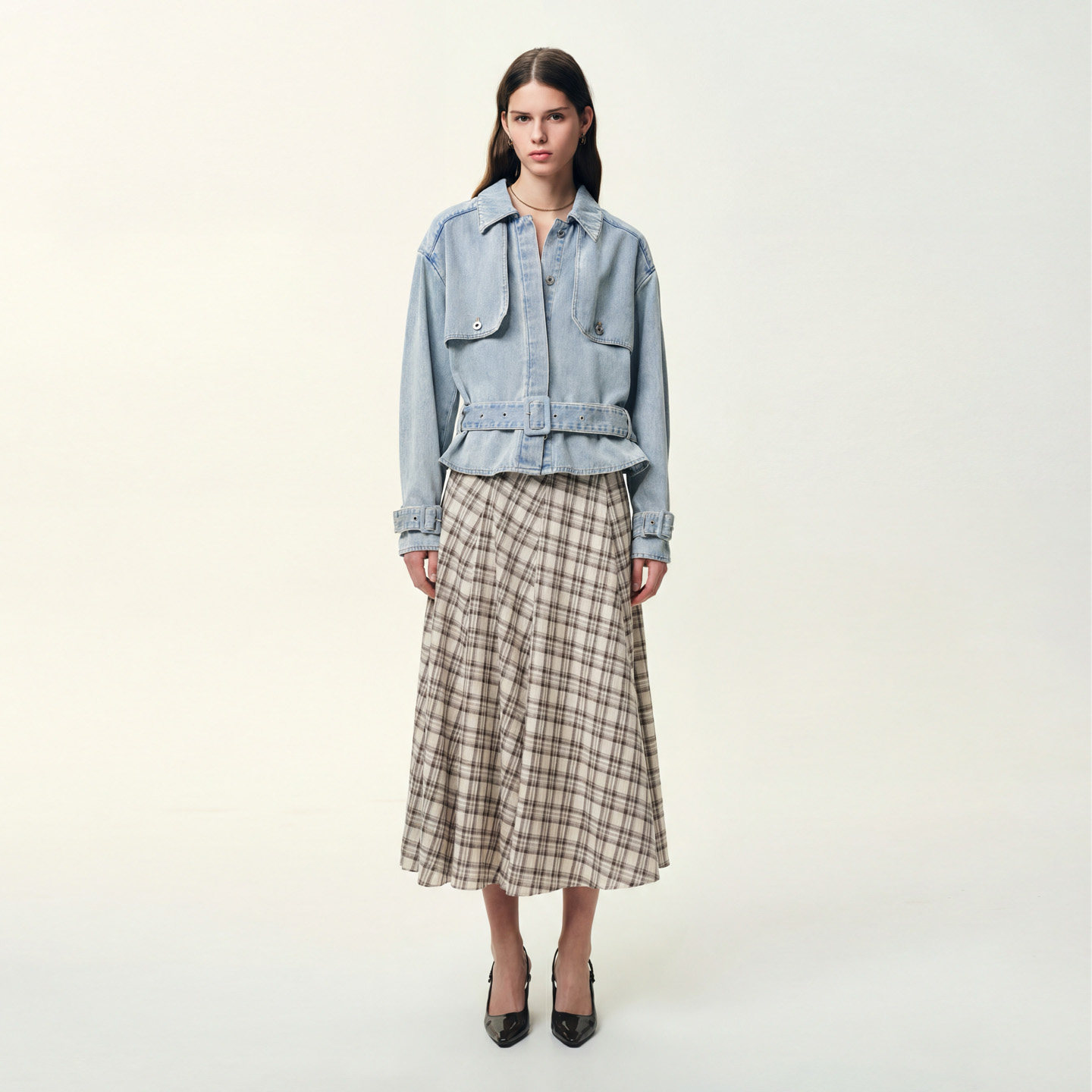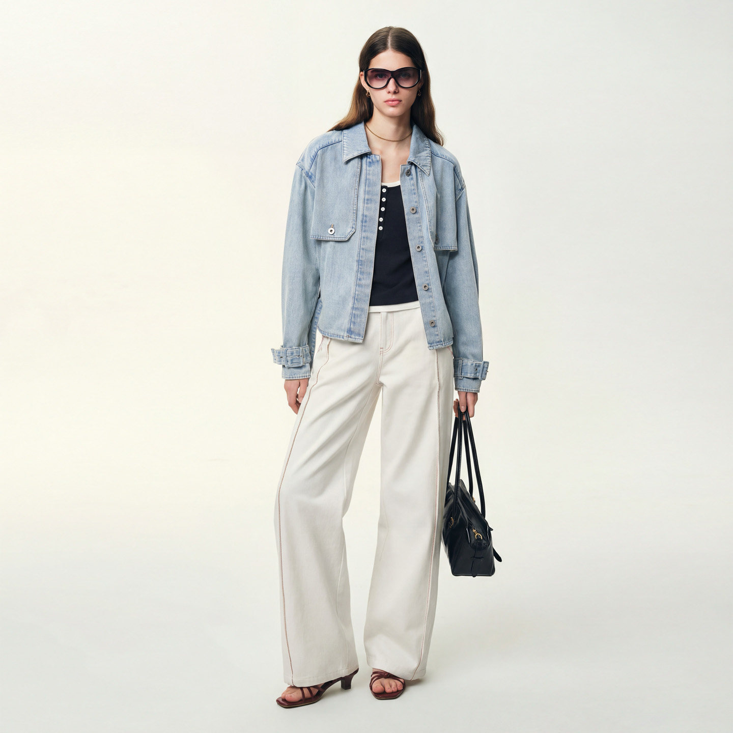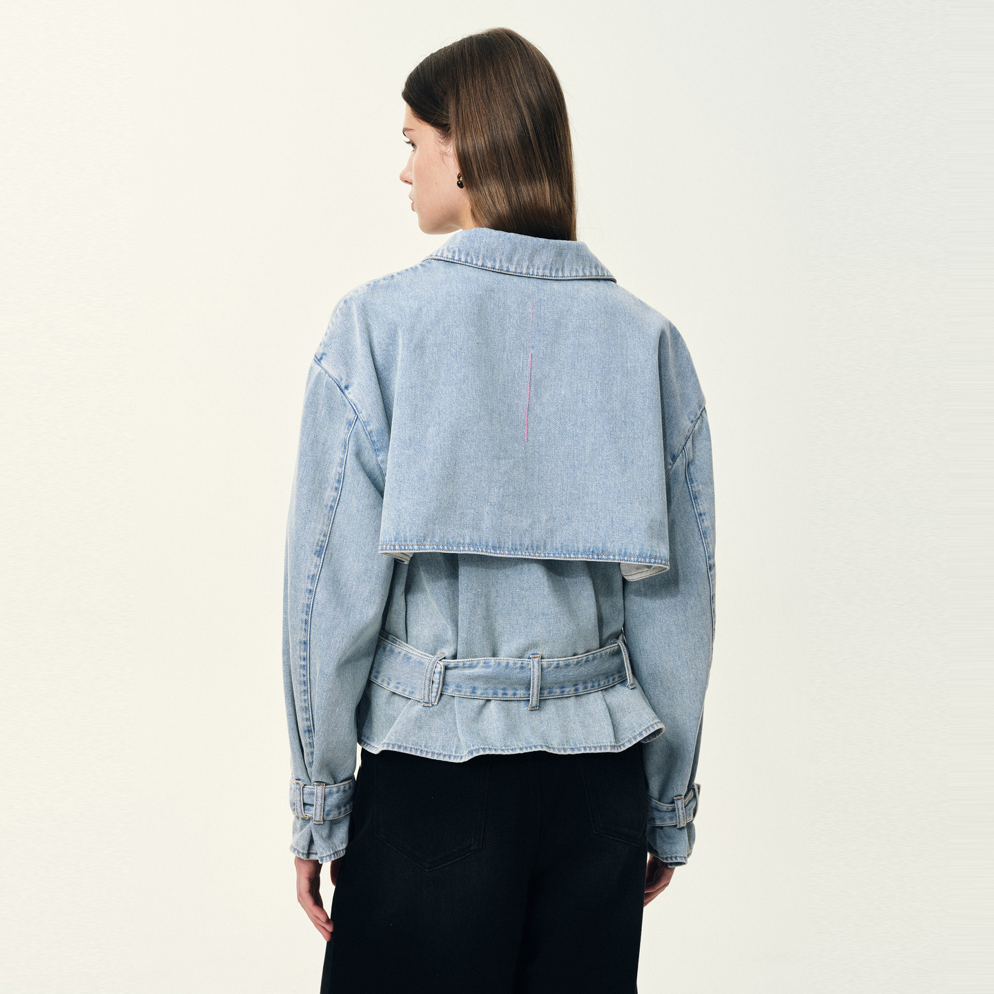 Fabrique猎户座风衣 早春牛仔外套女2026年春 浅蓝色纯棉收腰短款