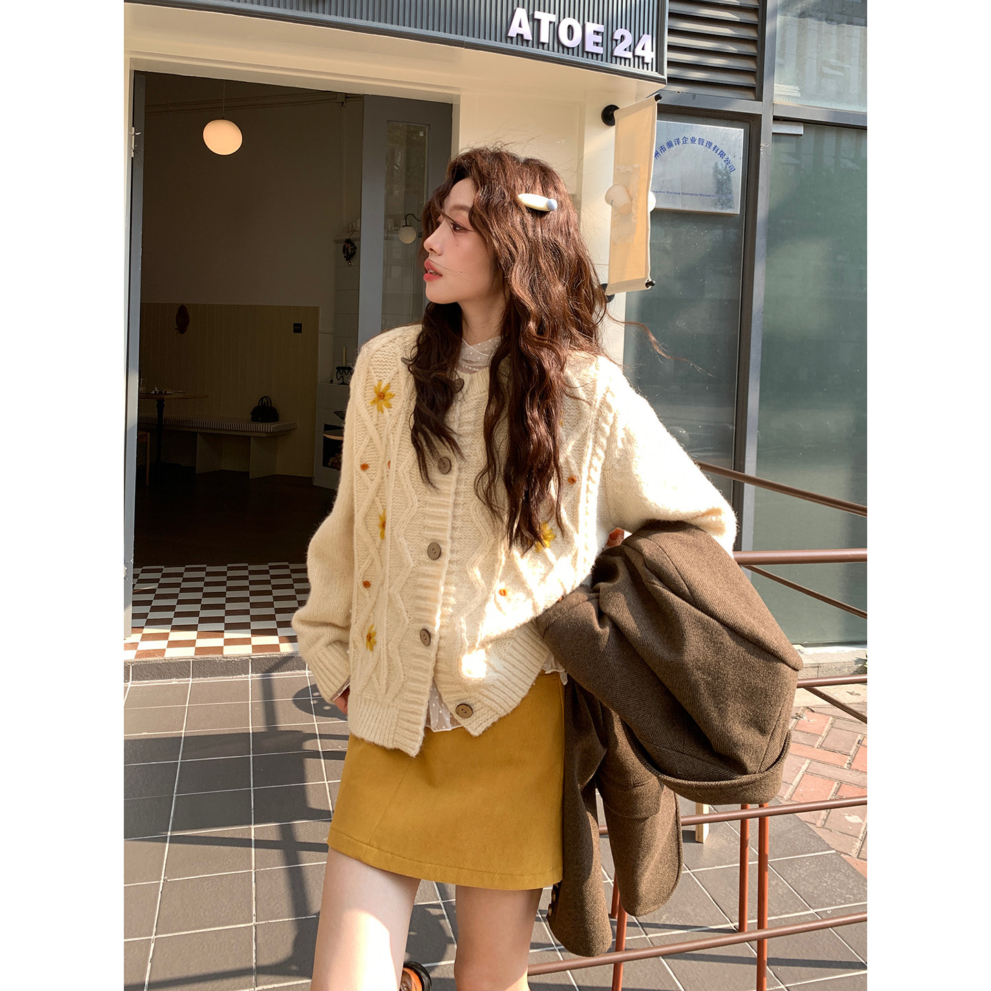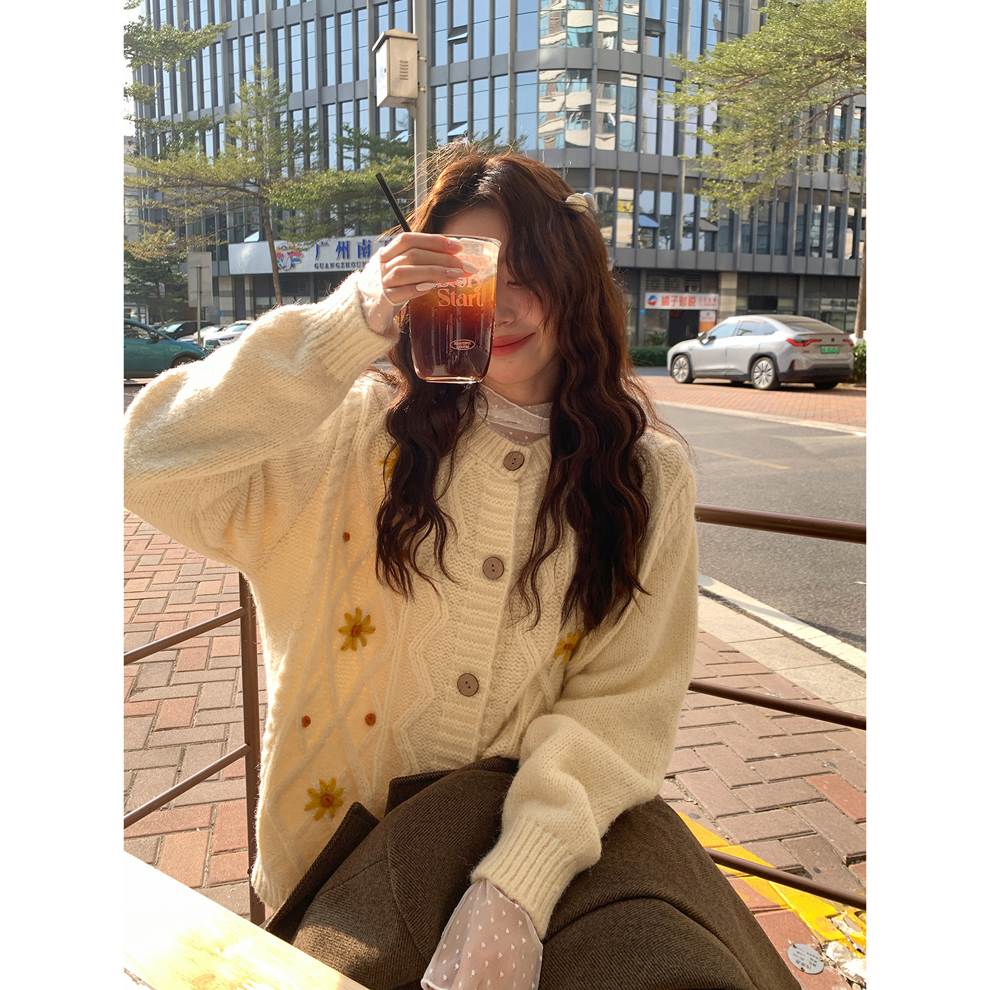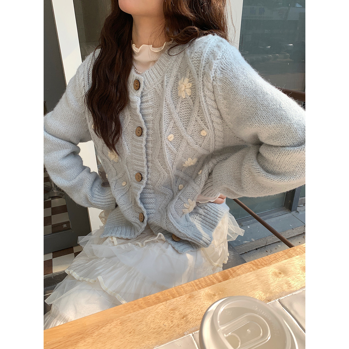 Even一雯 韩系高智感秋冬温柔休闲慵懒感手工钩花毛衣 角落雏菊