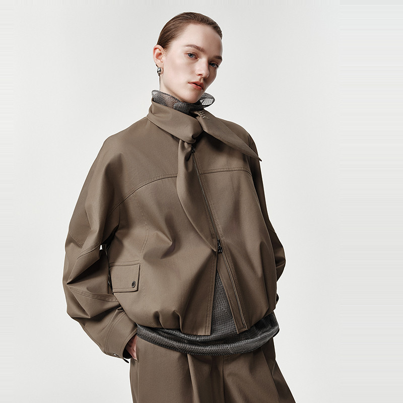 可拆卸领结短风衣外套 Marisfrolg玛丝菲尔2026春新款 棉感弹力