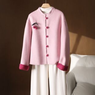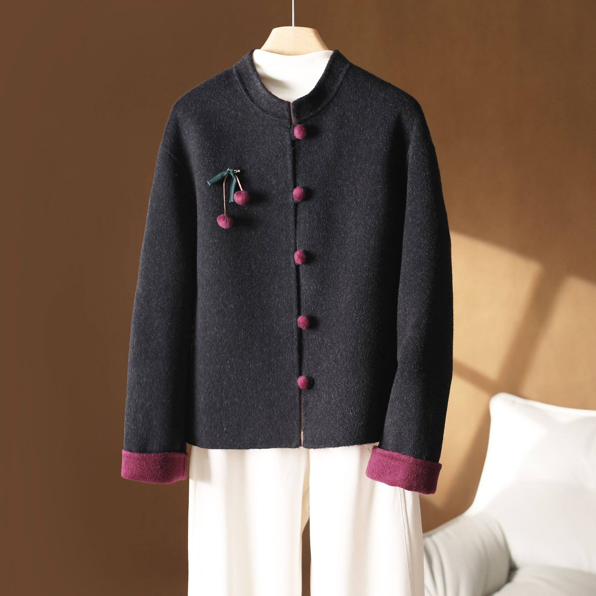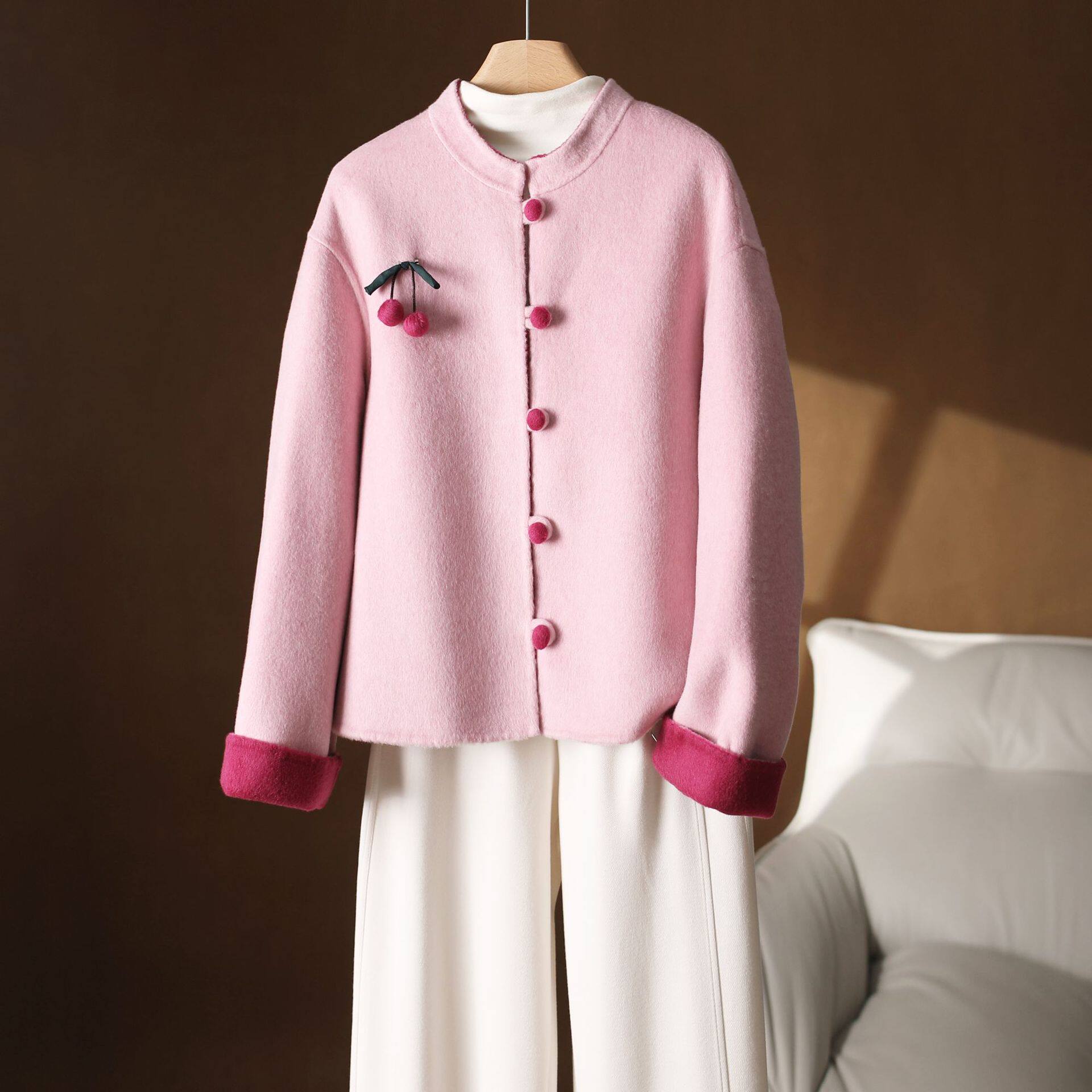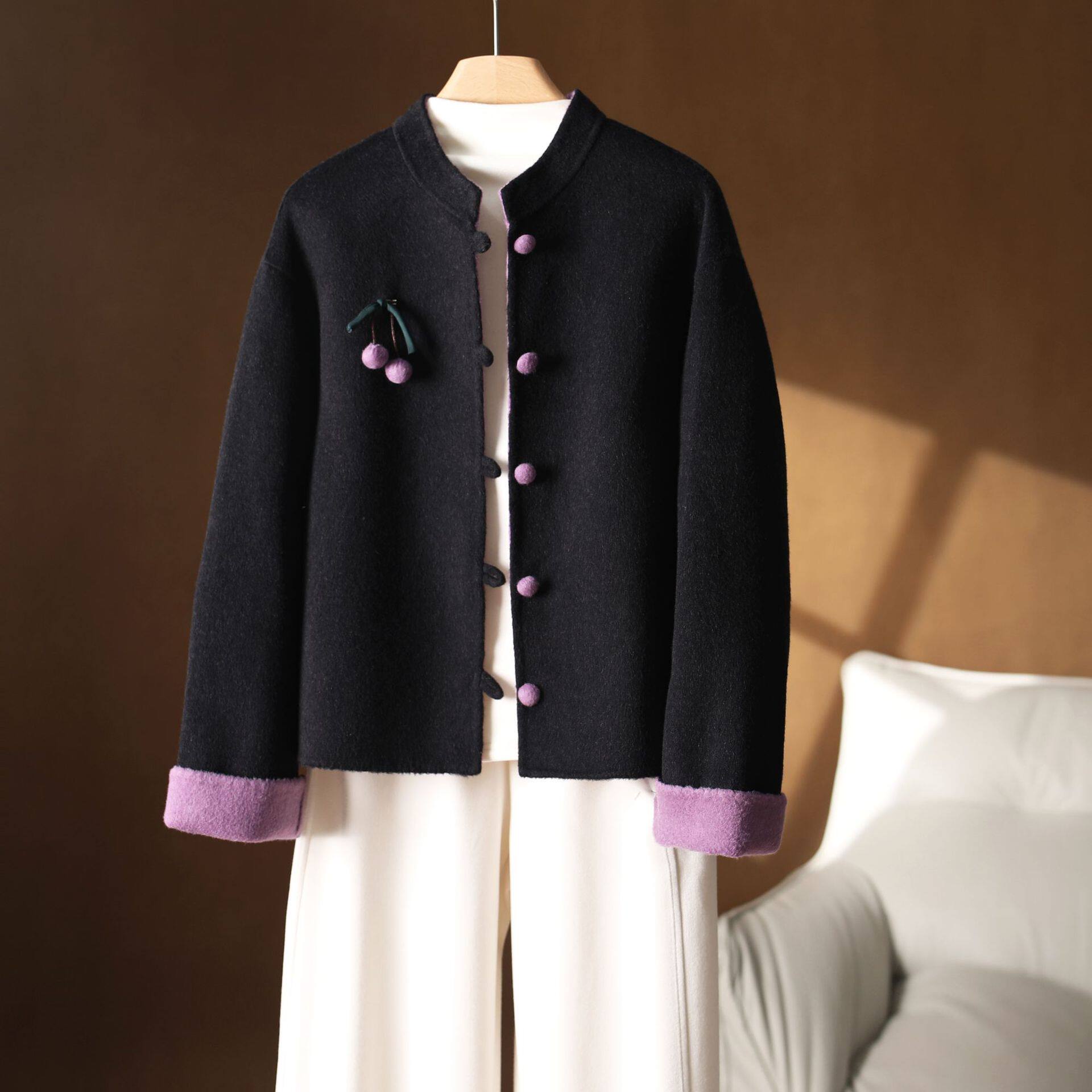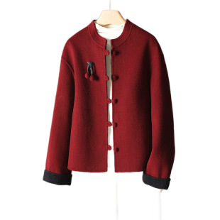 2025秋冬短款 毛呢外套小个子女 双面羊绒大衣网红国风单排扣新中式