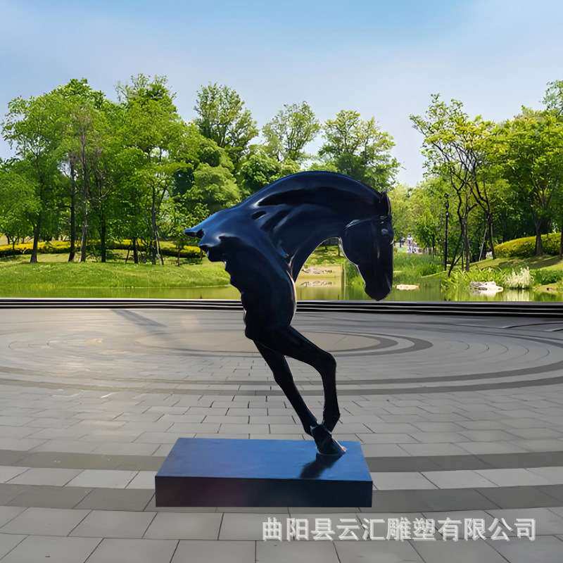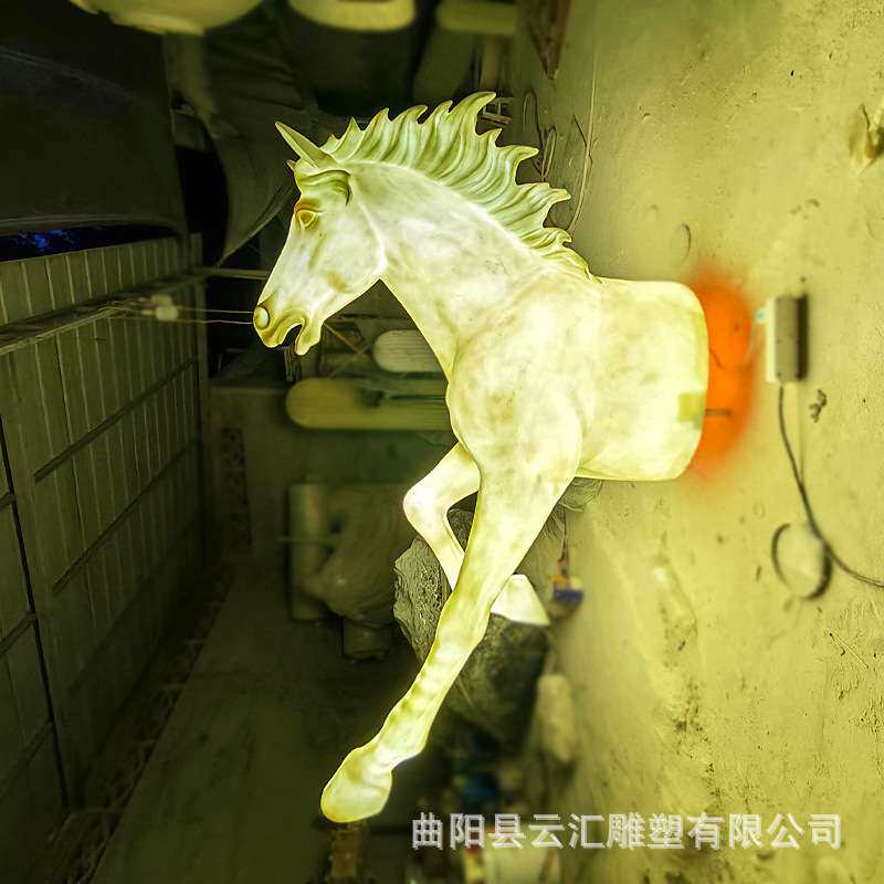玻璃钢发光马头马雕塑马头半截马简约酒店大堂动物景观装 饰品摆件