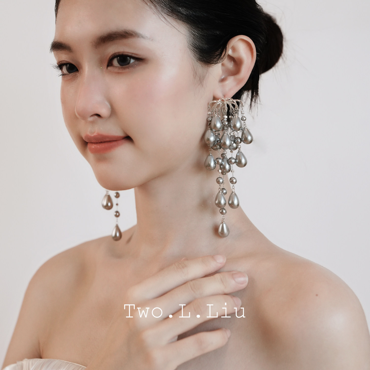 Two.L.Liu银河印象系列原创设计耳环女夸张银色珍珠重工高级耳饰