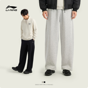 弯刀裤 子阔腿运动长裤 男2026新款 灰色宽松休闲裤 卫裤 李宁C位裤