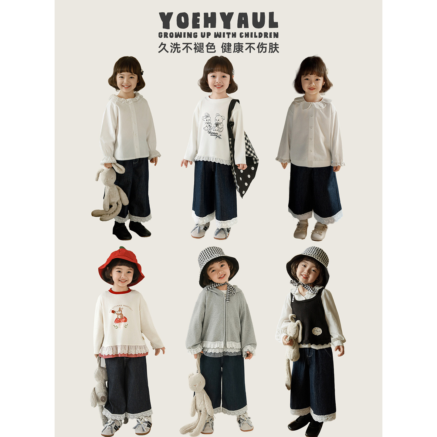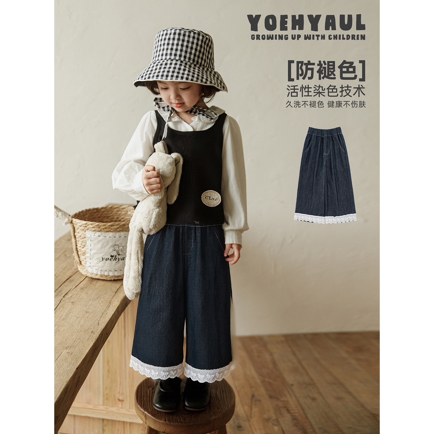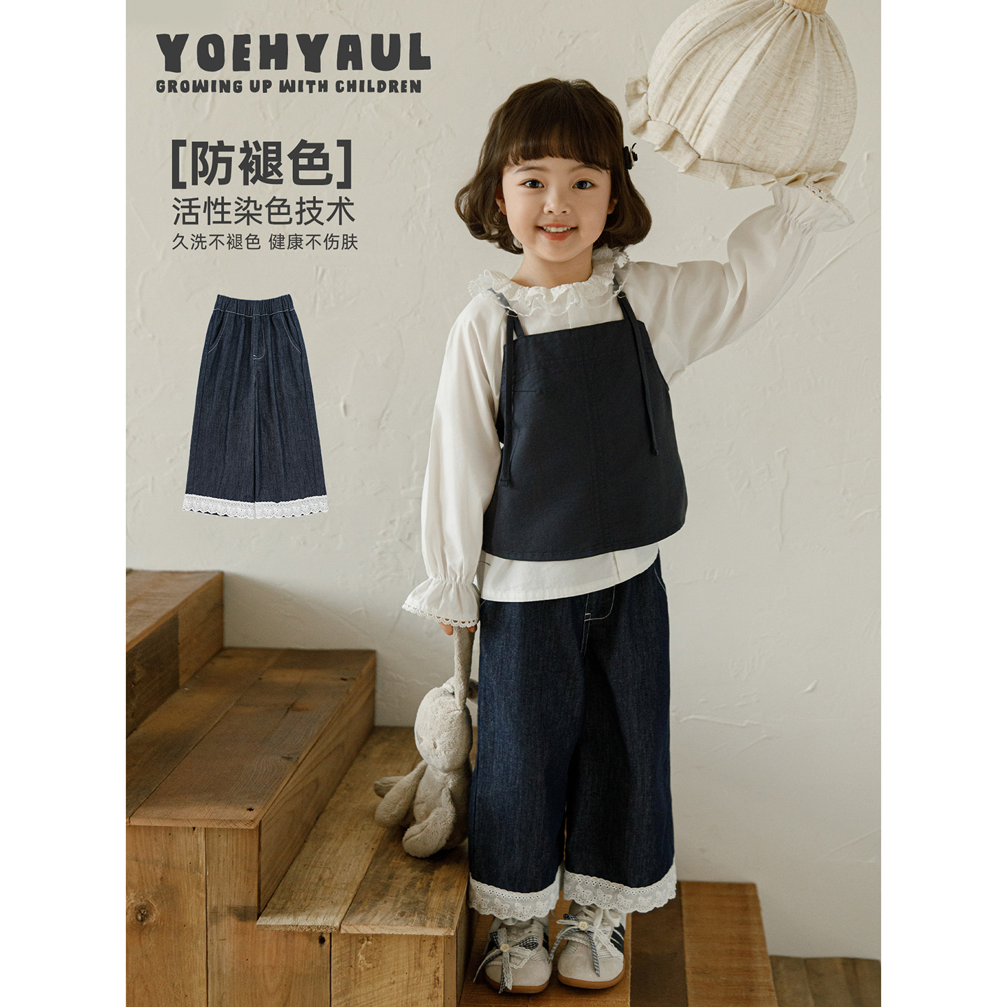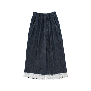 不易褪色儿童裤 宽松直筒九分花边牛仔裤 子潮 新款 幼悠女童2026春季