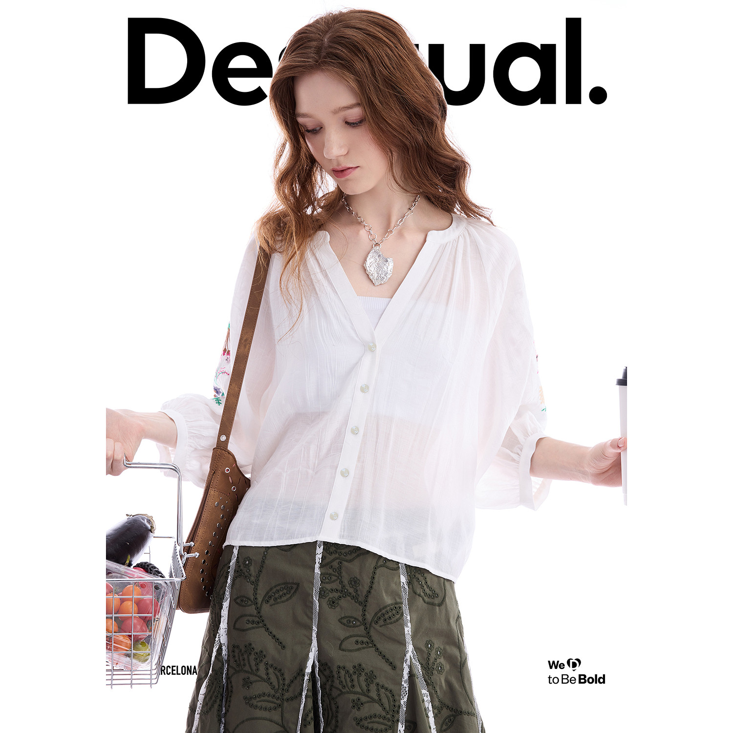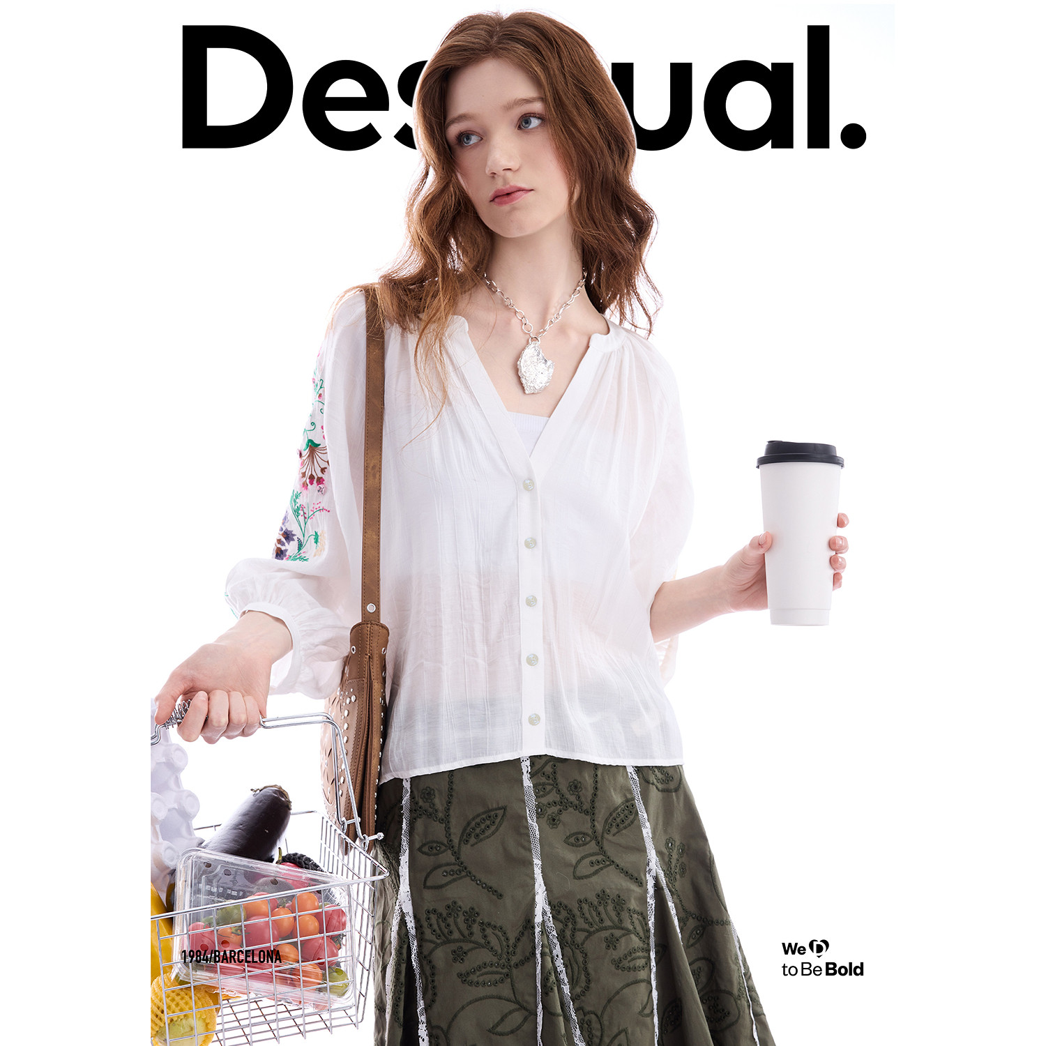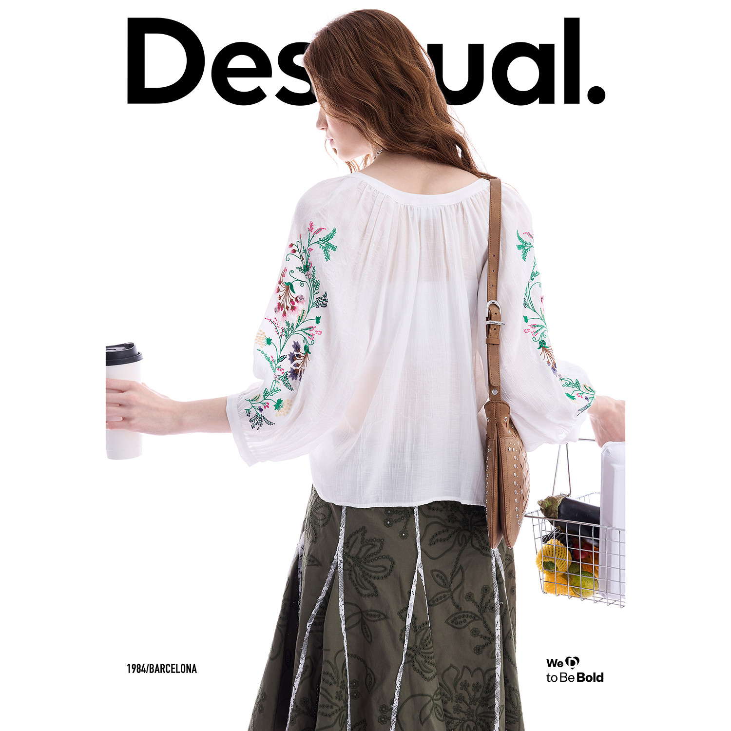 衬衫 Desigual26春夏新品 女式 饰娃娃衫 宽松花卉刺绣装