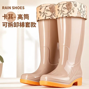 雨靴 加绒保暖厨房工作套鞋 户外女士成人雨鞋 中筒高筒防水防滑胶鞋