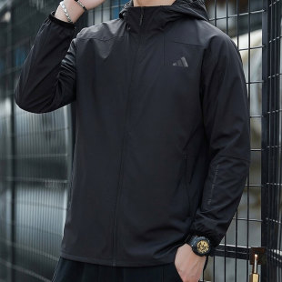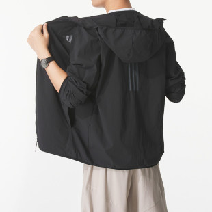 休闲宽松梭织连帽休闲外套男士 薄款 夹克 新款 阿迪达斯防风衣男春季