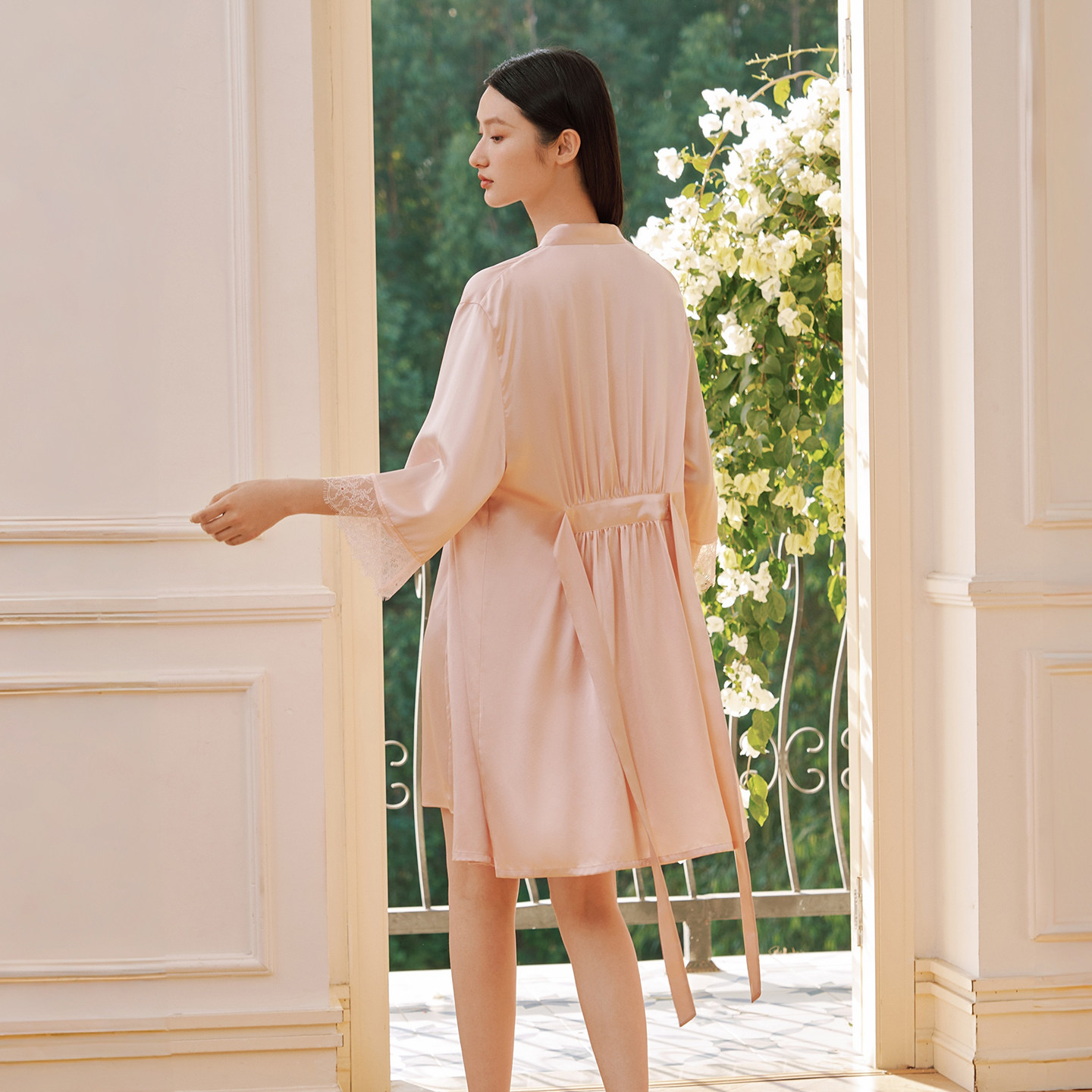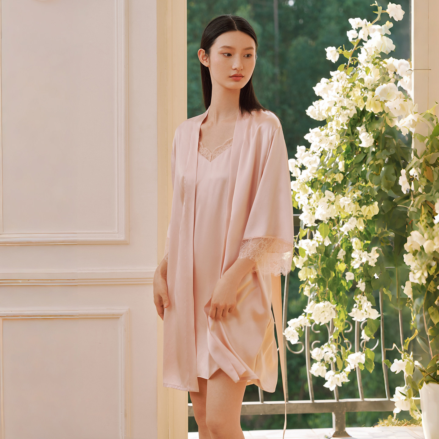 金三塔重磅真丝睡袍女100%桑蚕丝蕾丝性感红色婚庆吊带裙睡衣晨袍