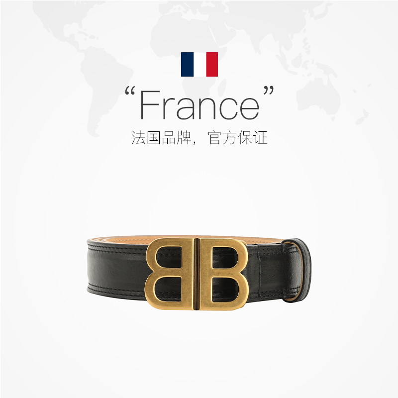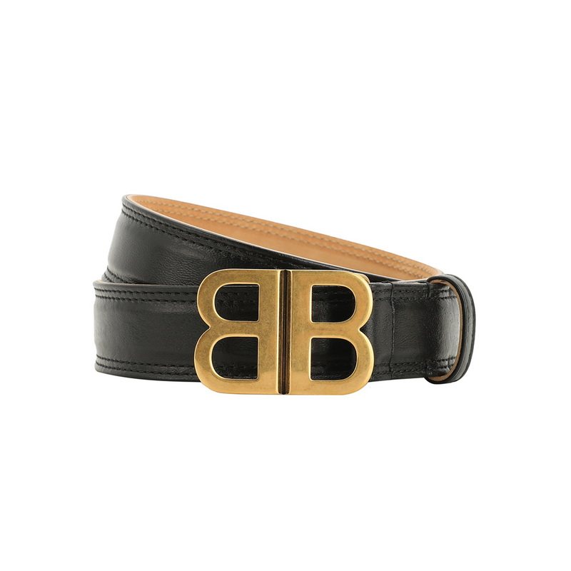 巴黎世家女士复古金BB扣羊皮革牛皮时尚 Balenciaga 腰带 自营