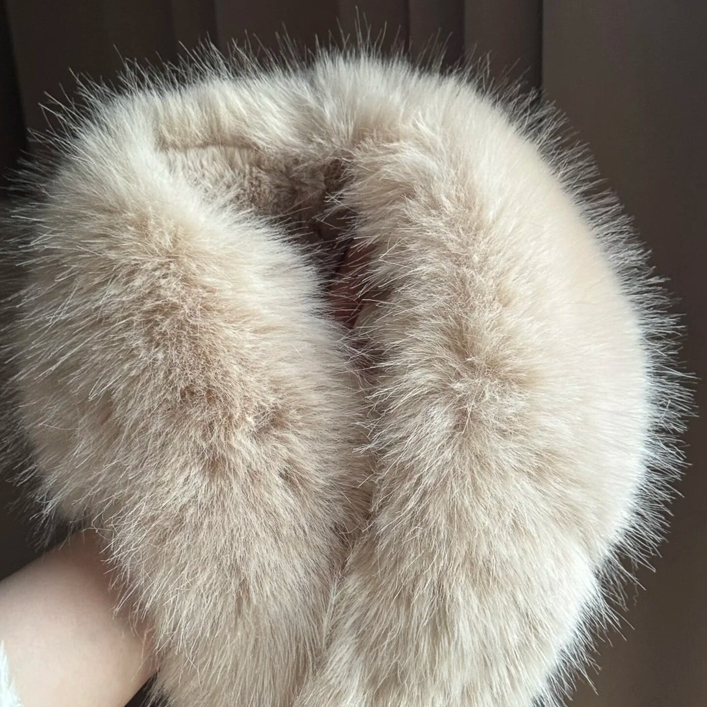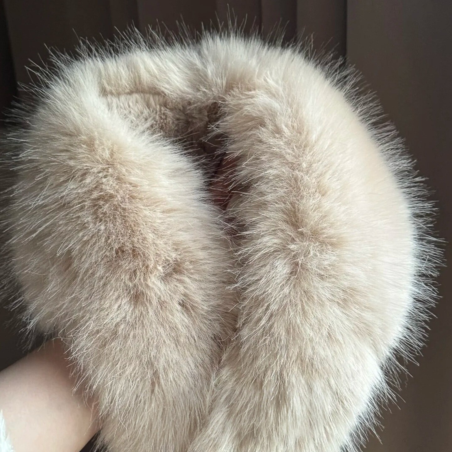 保暖气质高级感配饰 冬季 慵懒感 奶茶色仿狐狸毛围巾毛领围脖女款