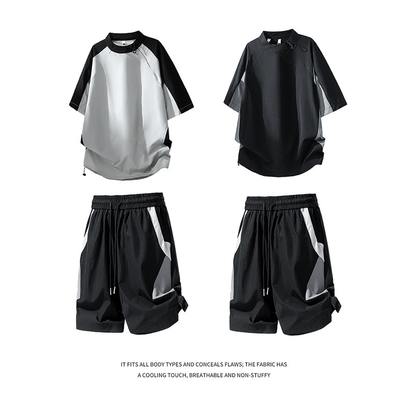 男士 t恤短裤 夏季 短袖 男生一套帅气搭配 薄款 回力冰丝速干运动套装