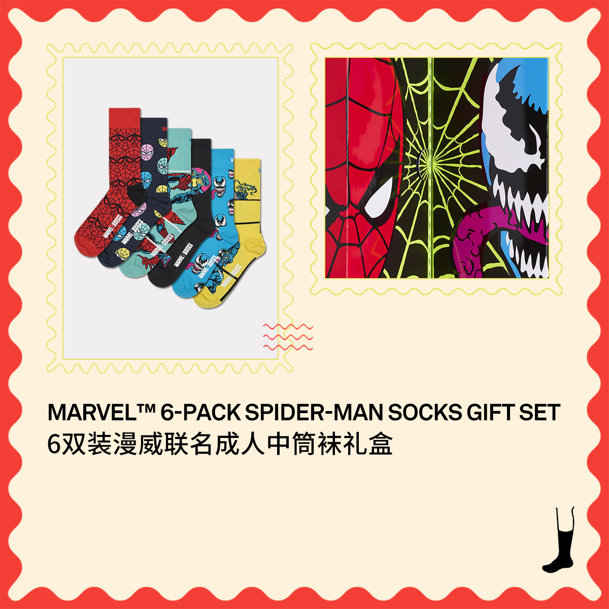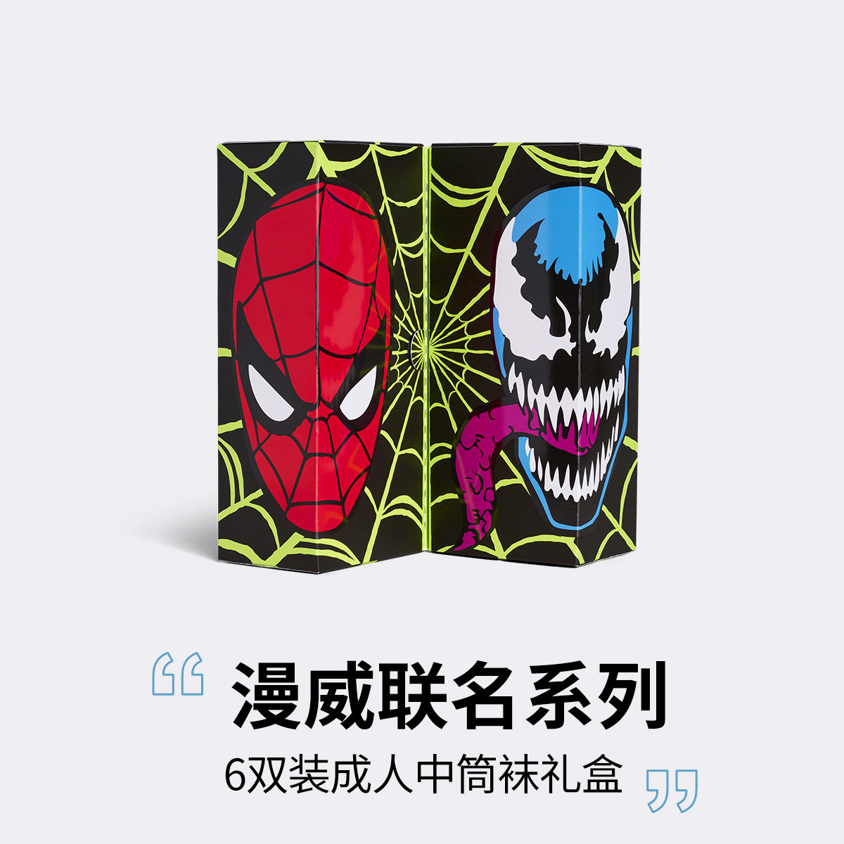Socks漫威联名蜘蛛侠毒液袜子6双装 Happy 礼盒中筒袜 春夏款