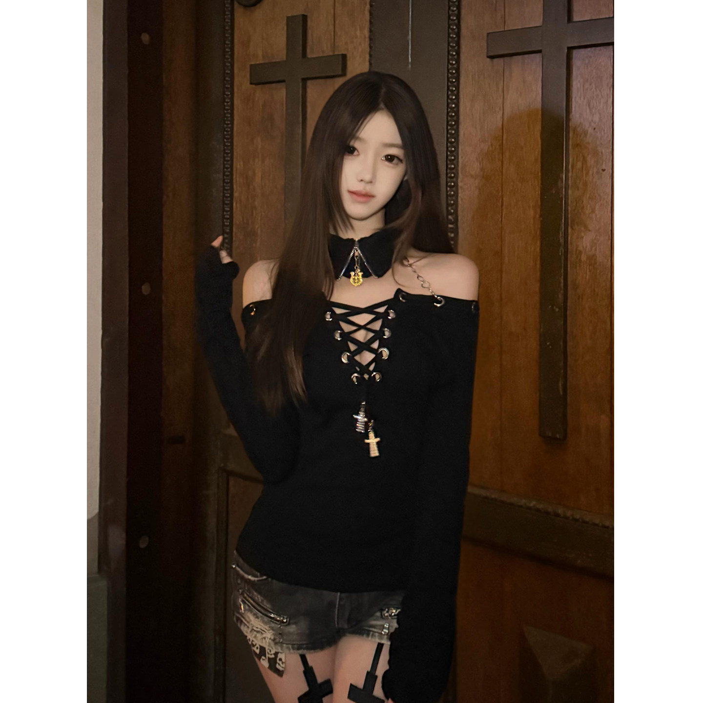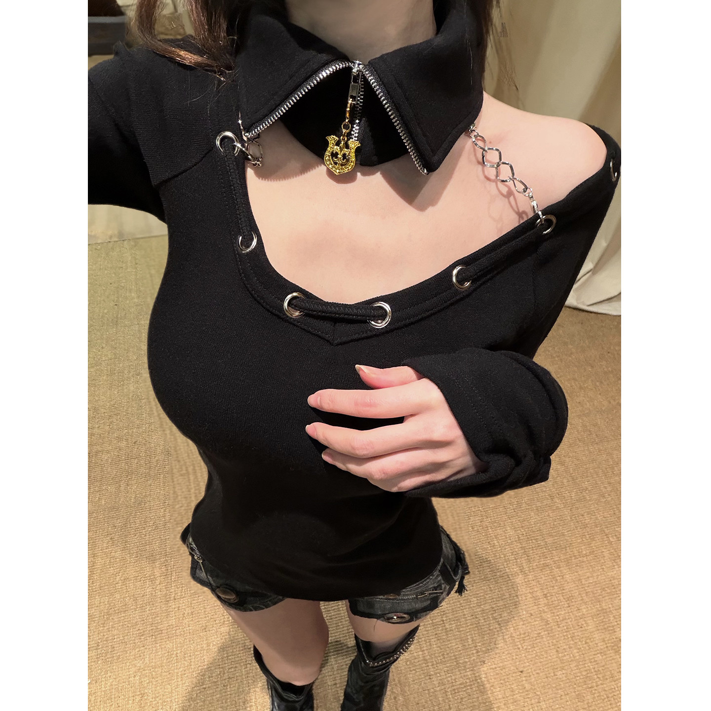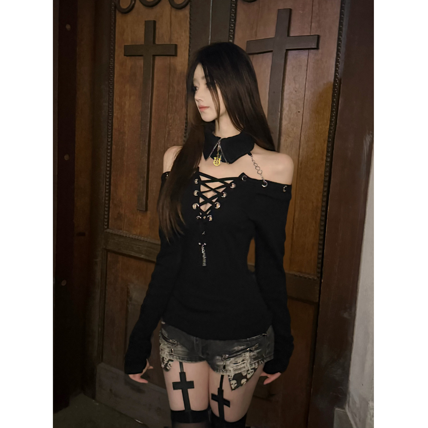 假领绑带正反两穿长袖 岛 T恤百搭小众设计显瘦内搭上衣 小雨