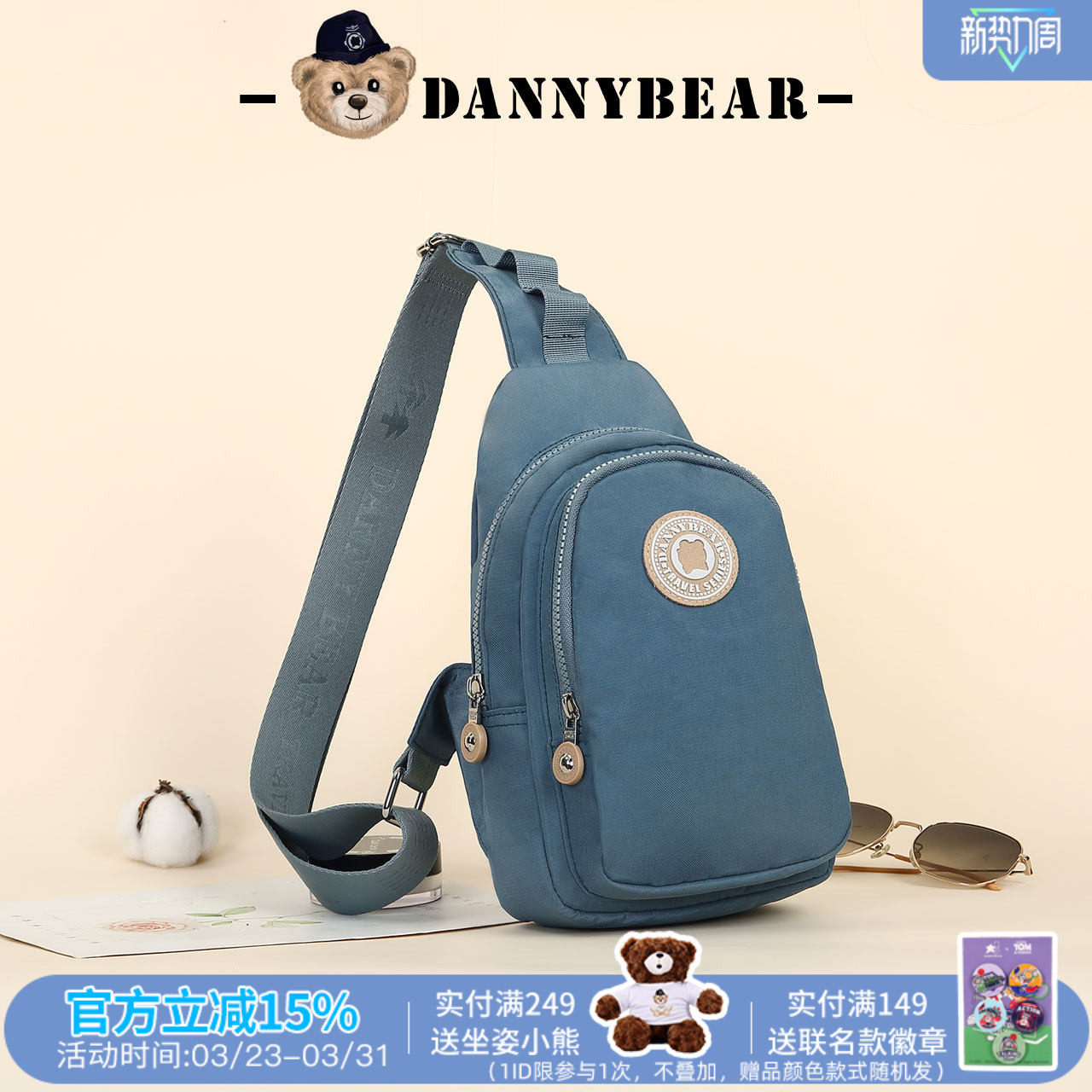 丹尼熊女包尼龙胸包男2026新款 胸前斜挎妈妈包旅行登山斜背包 大款