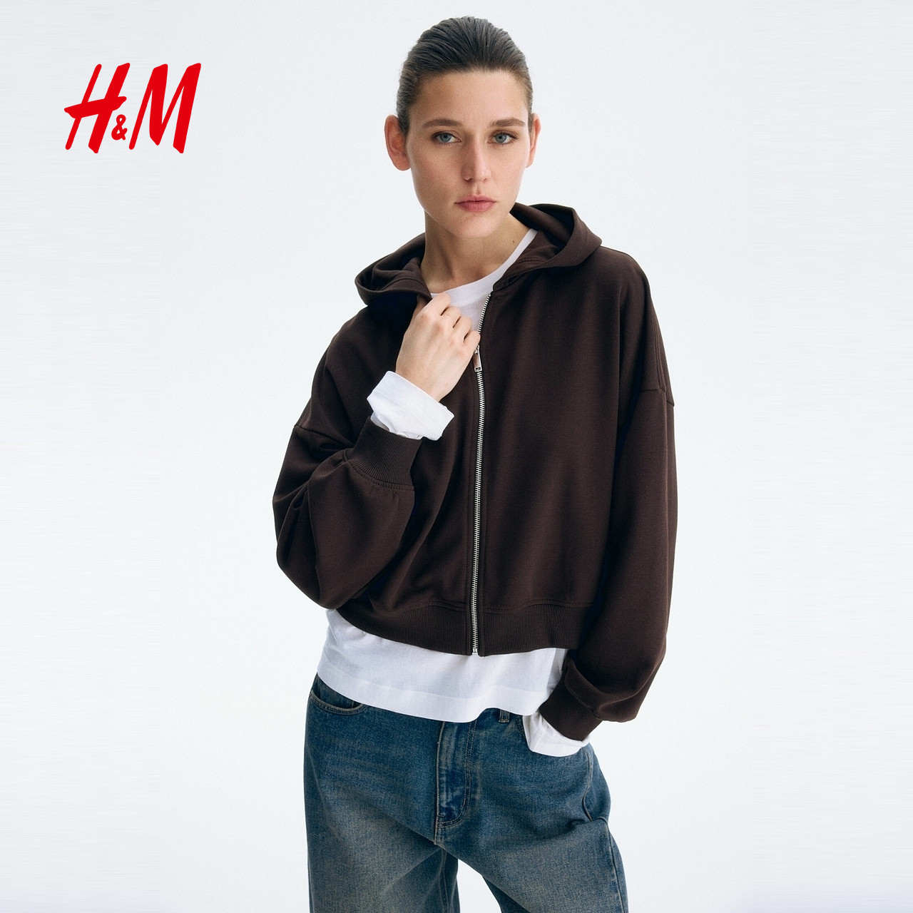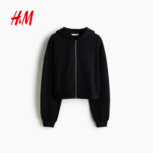 卫衣2026春季 拉链连帽衫 新款 轻便长袖 1330087 运动宽松短款 HM女装