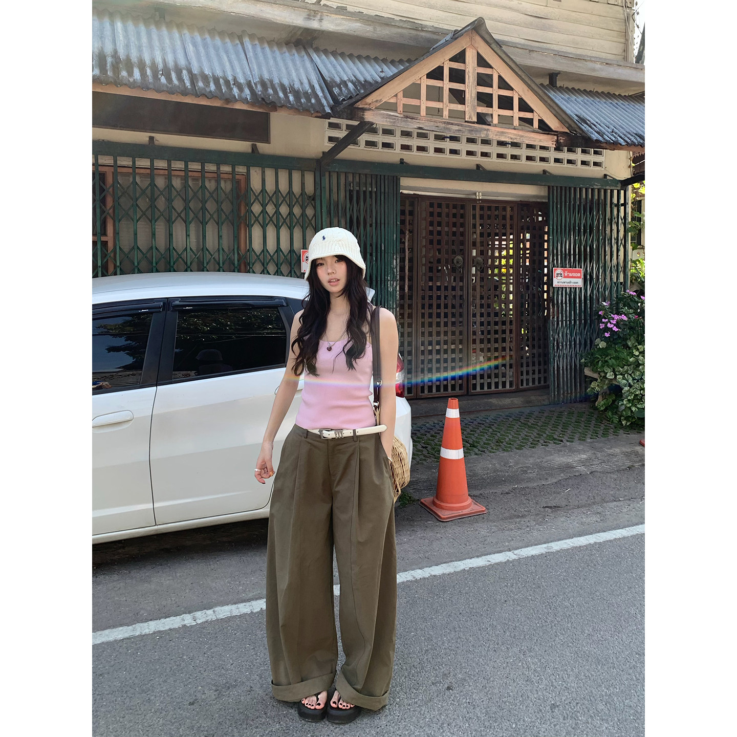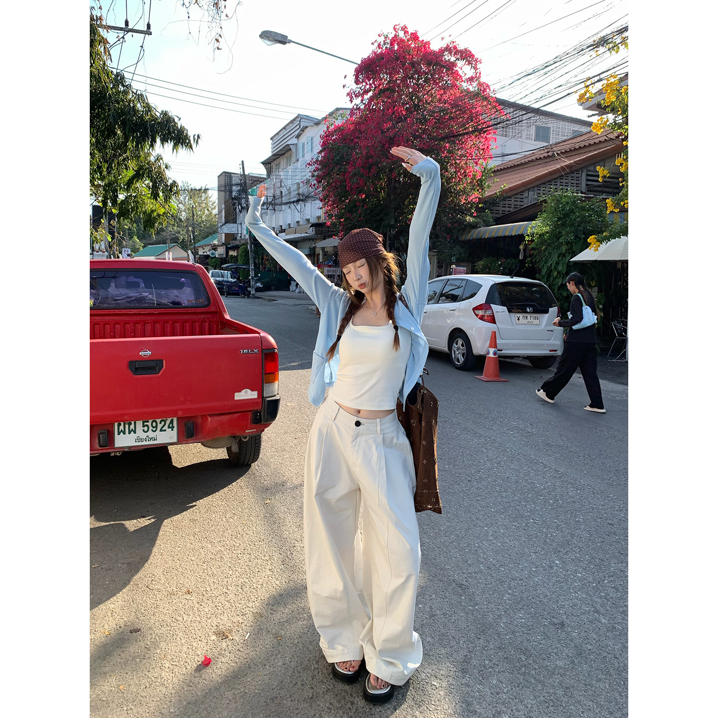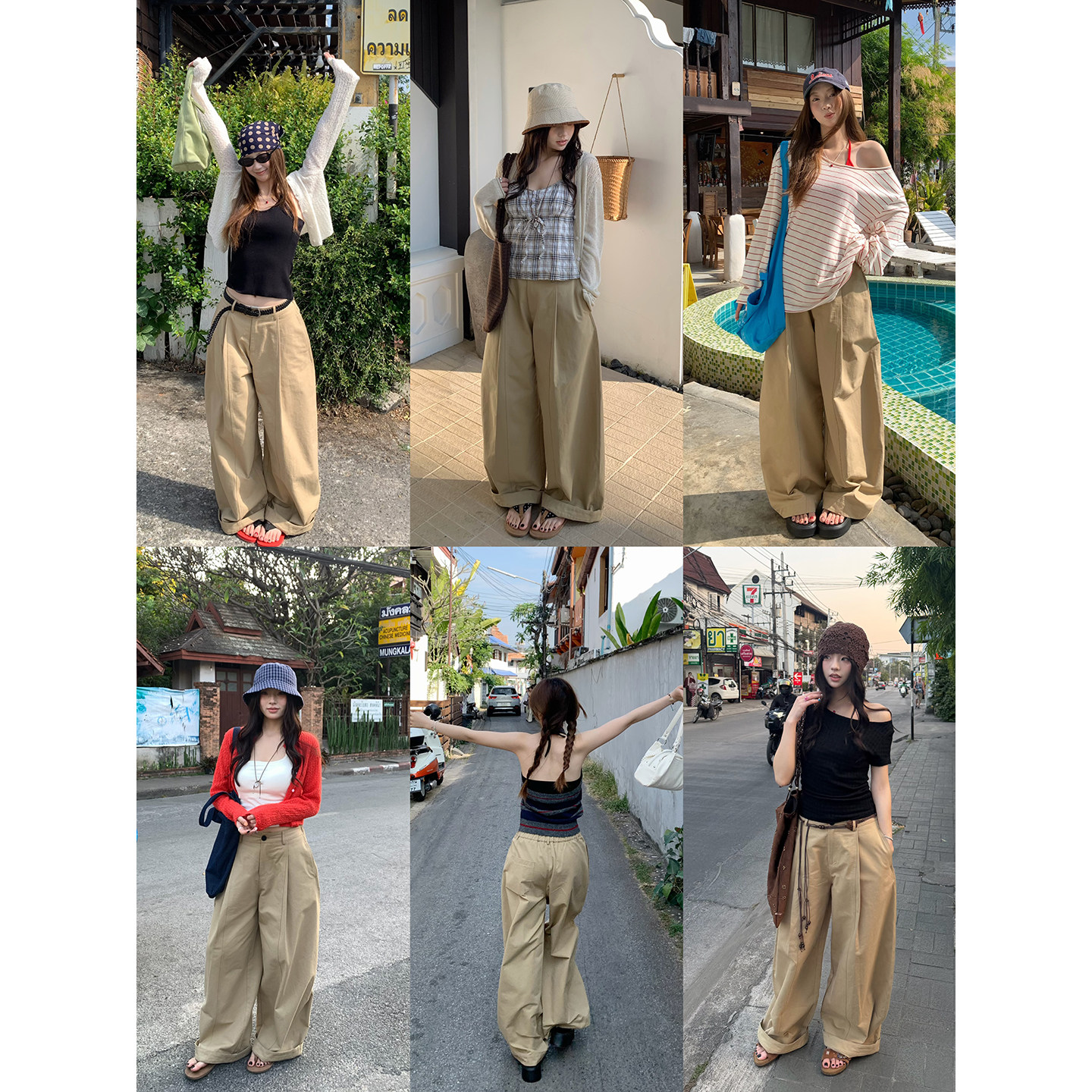 宽松显瘦直筒高腰阔腿长裤 2026春夏新款 女 大褶弯刀休闲裤 荒荒家