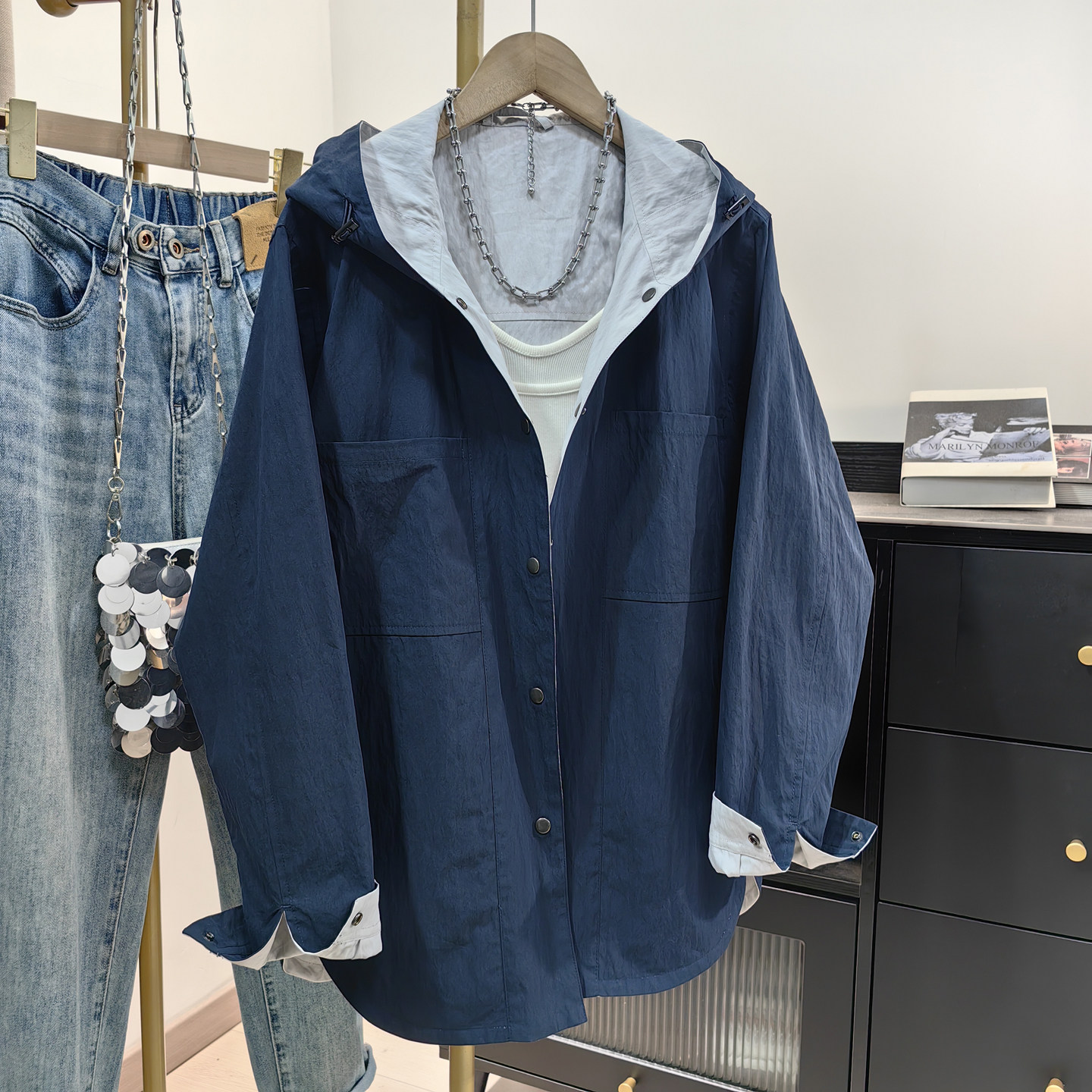 外套 风薄款 两面穿连帽风衣女2026早春新款 宽松休闲显瘦双面穿工装