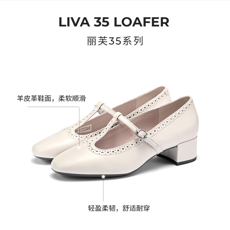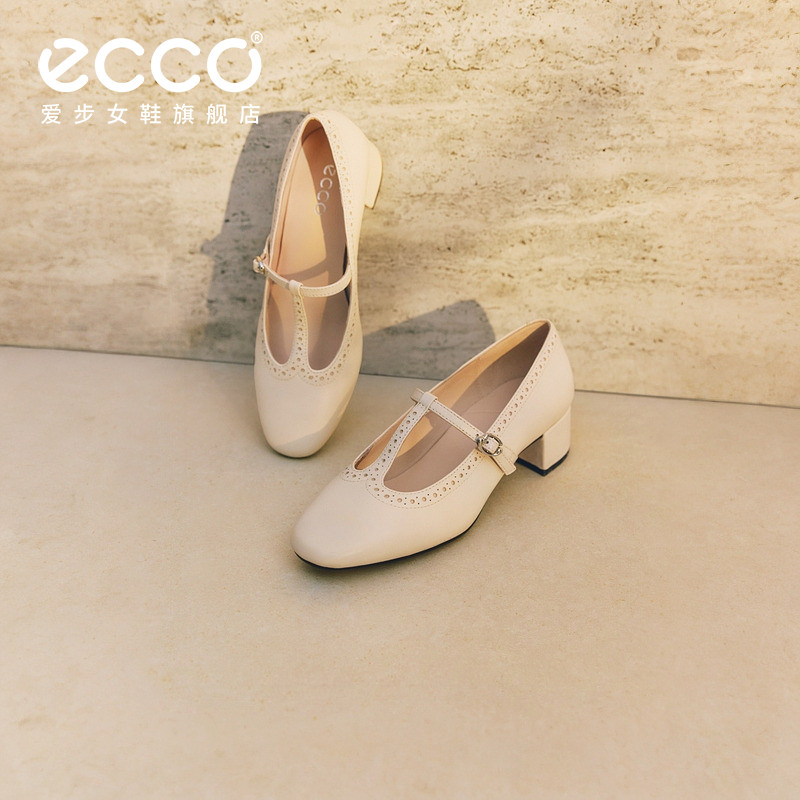玛丽珍单鞋 ECCO爱步女鞋 气质粗跟T字带法式 新款 丽芙250613 春季