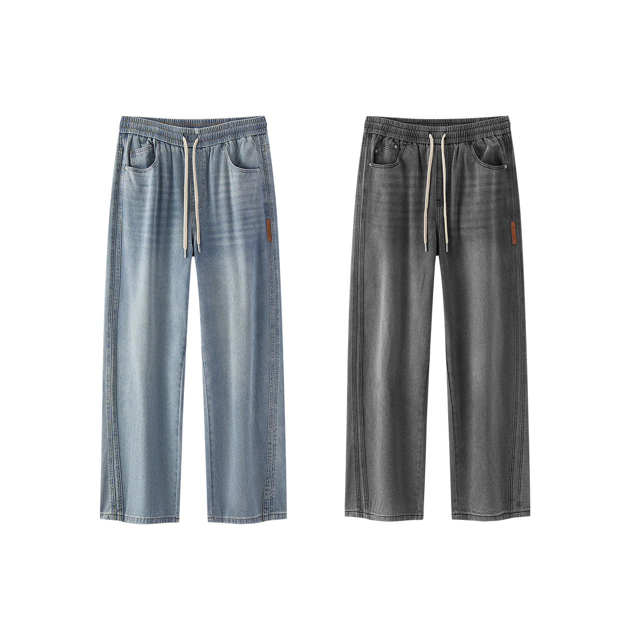 商场同款 橡筋腰长裤 森马牛仔裤 2026新款 男夏束腰宽松直筒裤 森柔