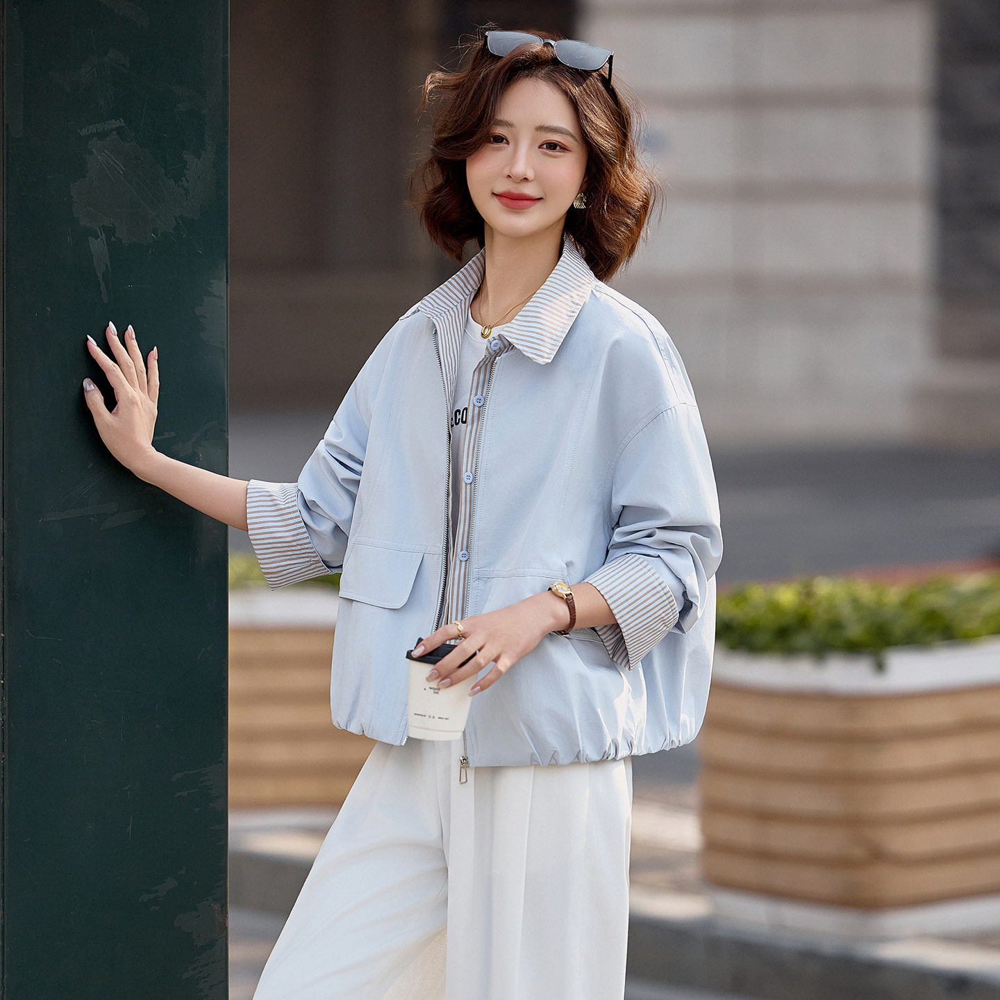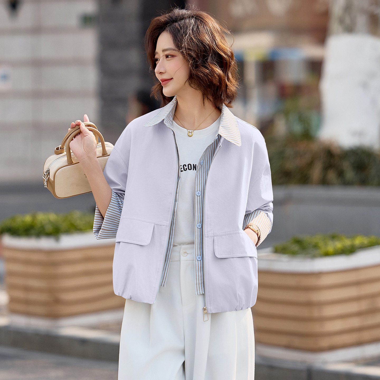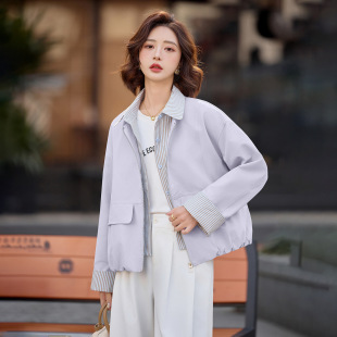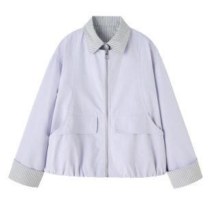 假两件条纹拼接上衣W9015 新款 设计感夹克开衫 休闲外套女2026春季