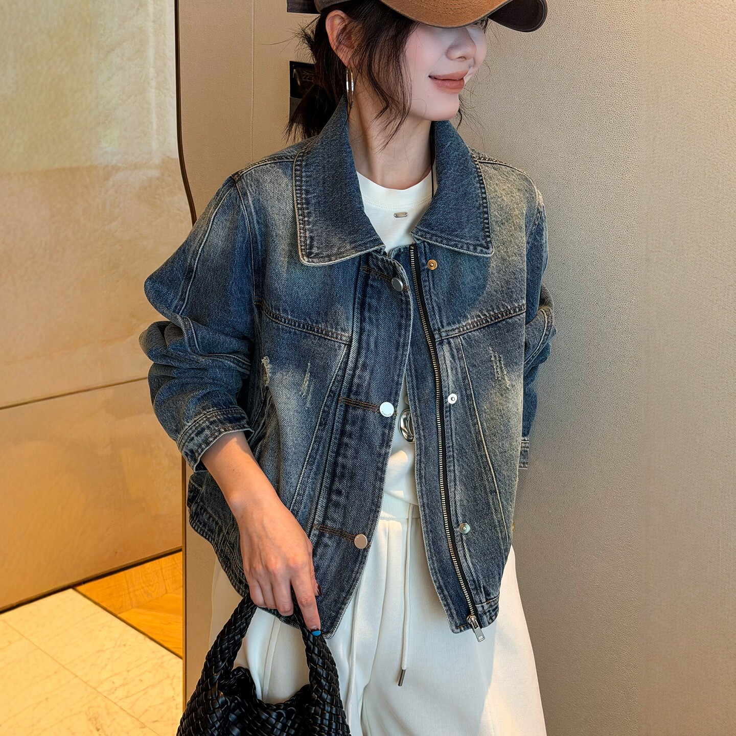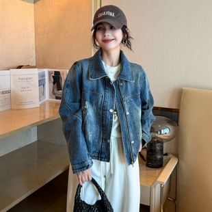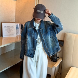 短款 欧货女装 牛仔衣潮 新款 复古做旧翻领牛仔外套女欧洲站2026春装