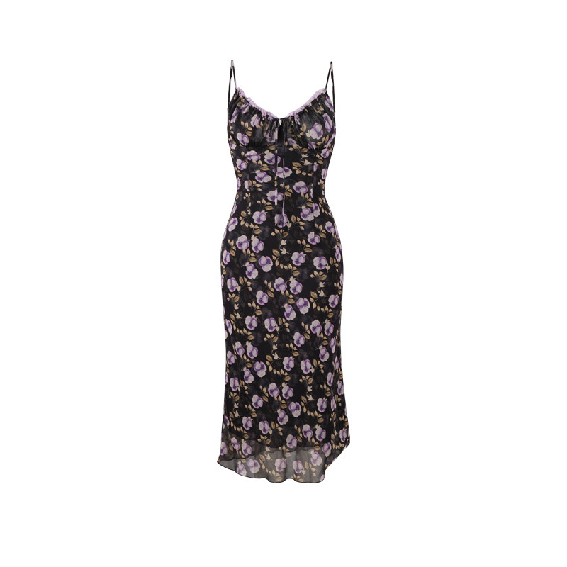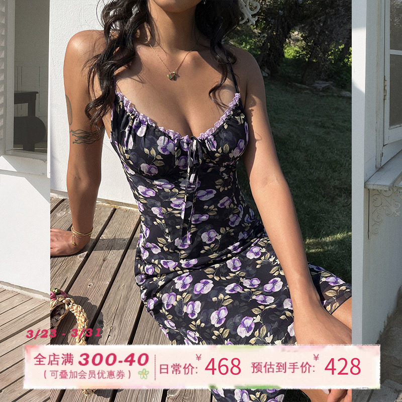 ITSNIKAR度假风撞色印花吊带连衣裙女梨形包臀裙海岛沙滩长款 裙子