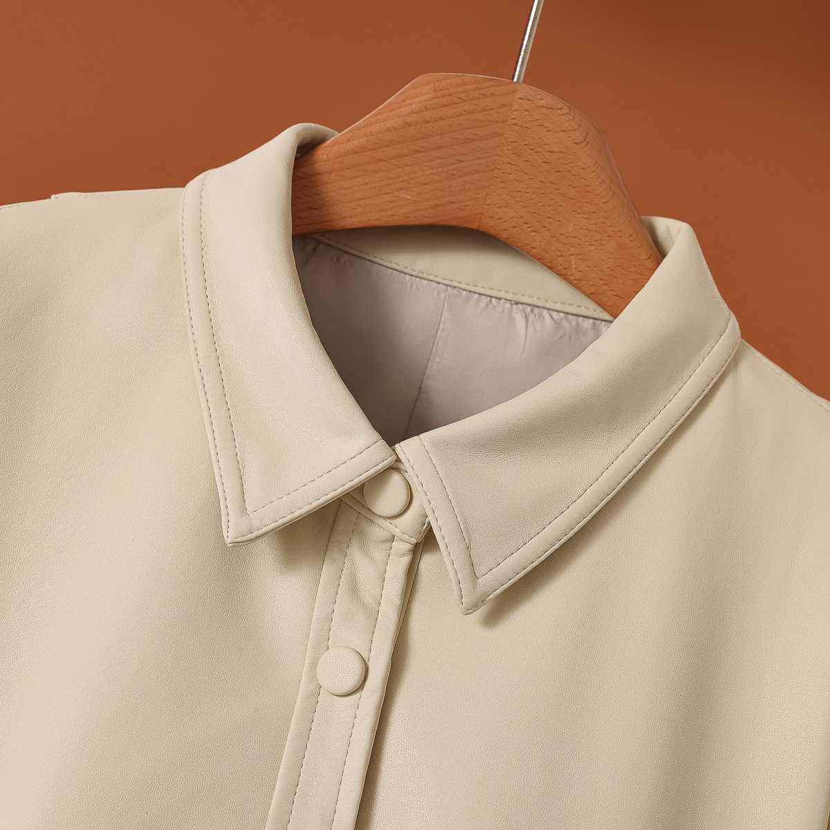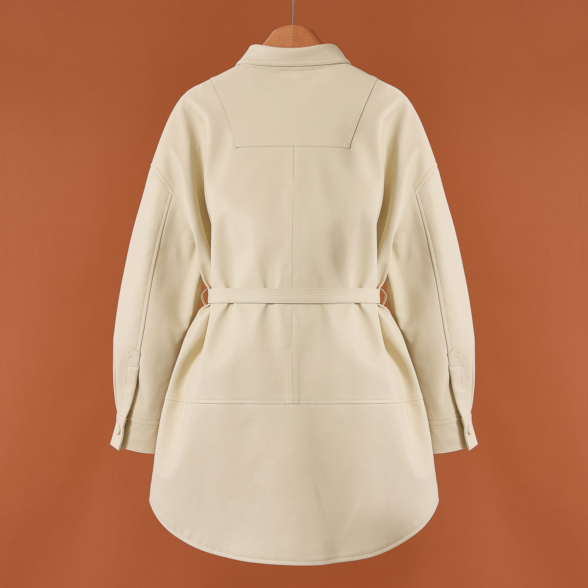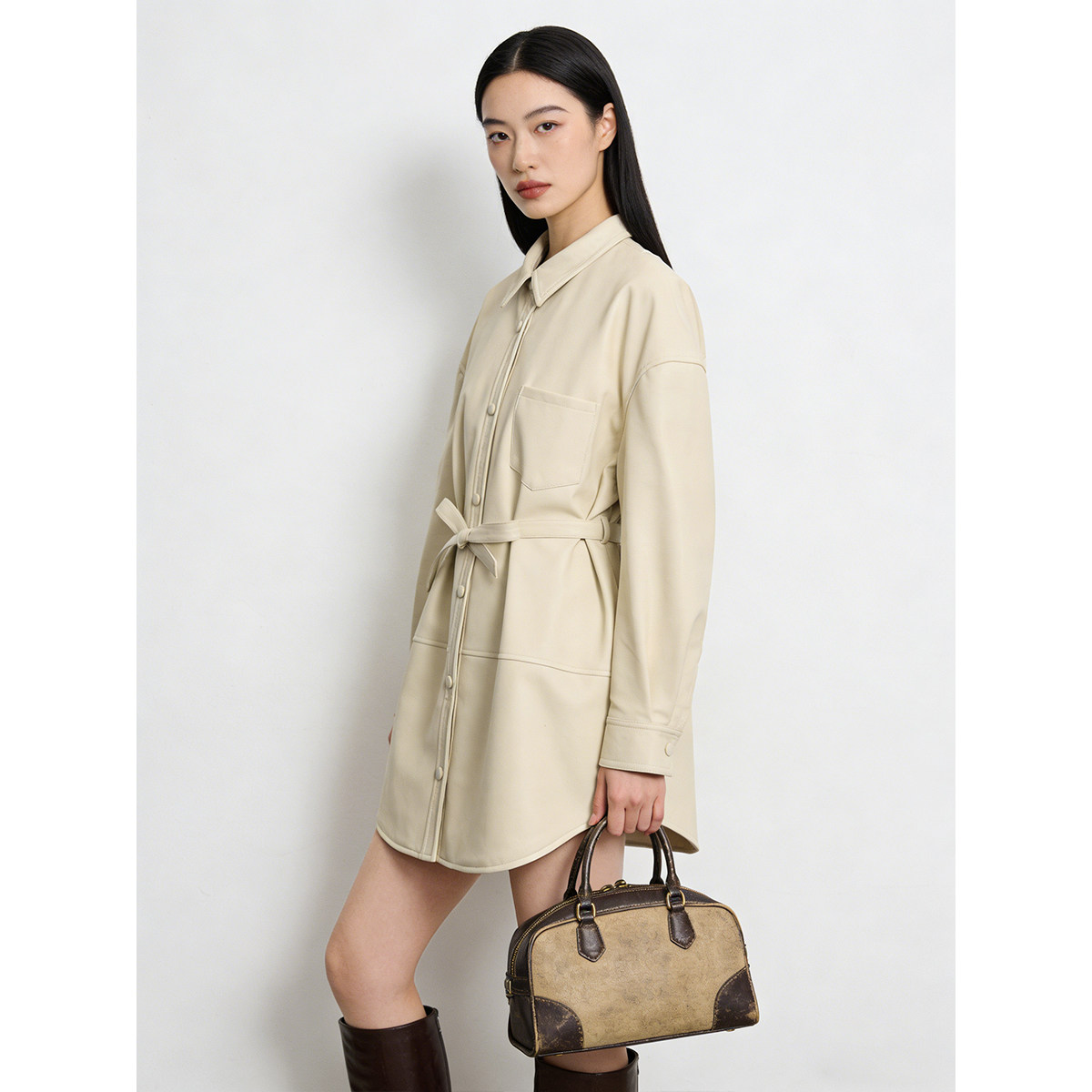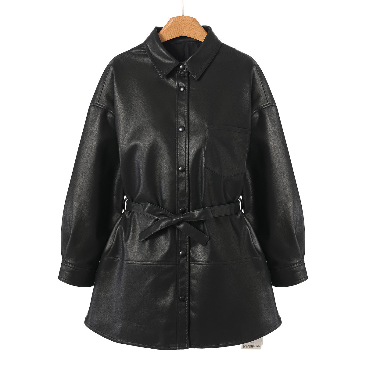 拉春装 韦 翻领单排扣系带男友风皮衣外套476 羊皮革 1999