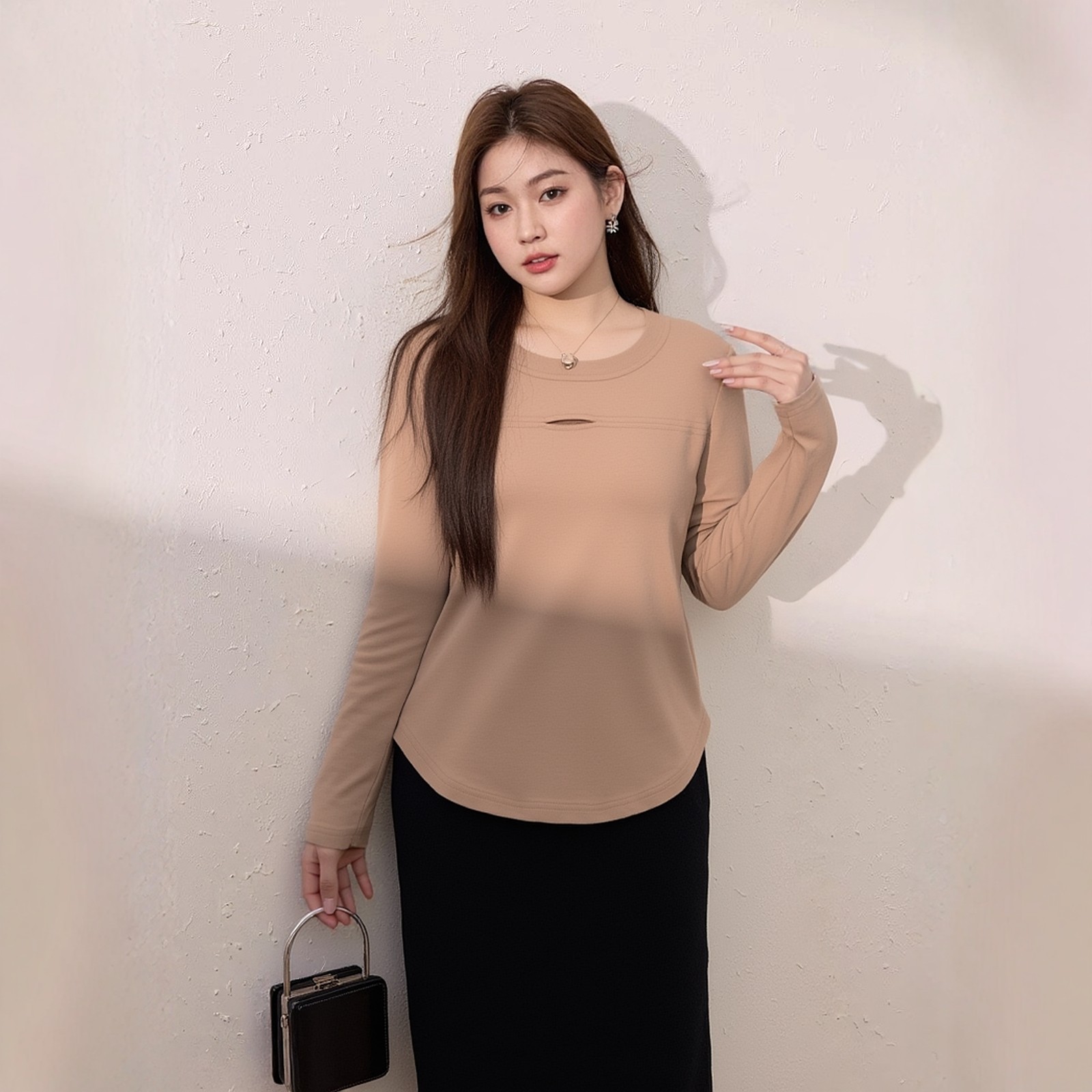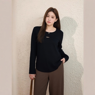 独特绝美正肩T恤 设计感镂空针织衫 大码 胖mm巨好看上衣外穿打底衫