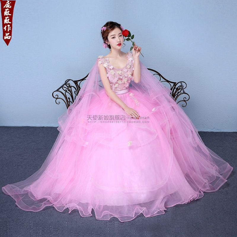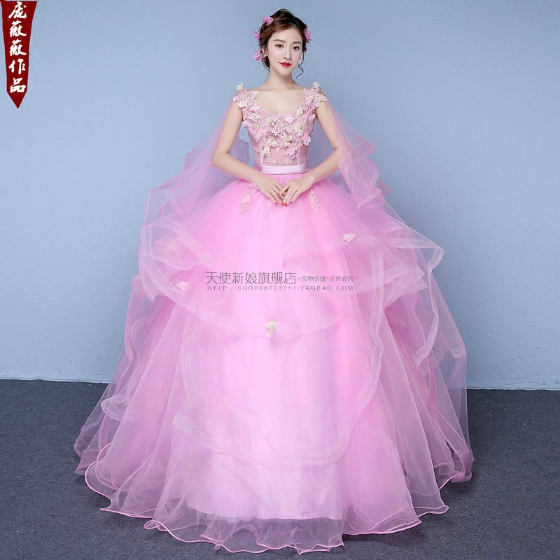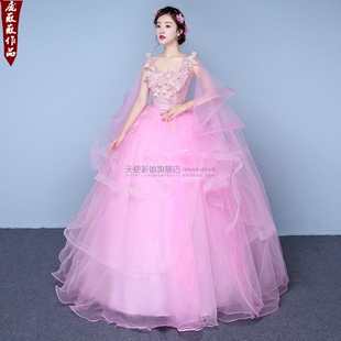 26新款 彩妆艺考礼服演出服粉色双肩大摆蓬蓬裙演出服婚纱礼服独唱