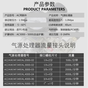 气动空压机气源处理器AW三联件AC过滤器AR2000气泵空气减压调压阀