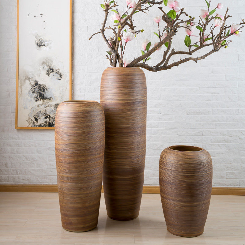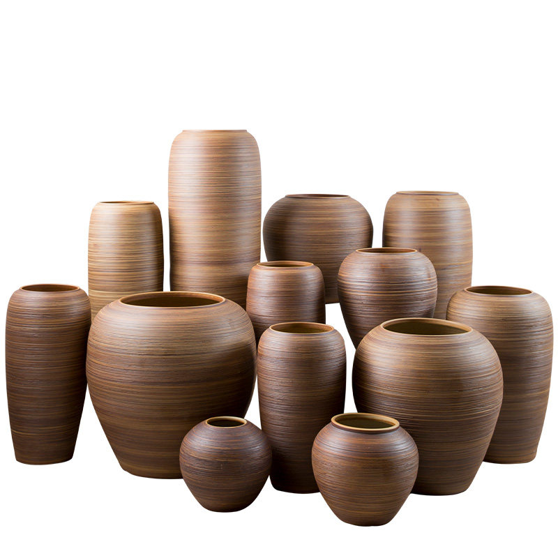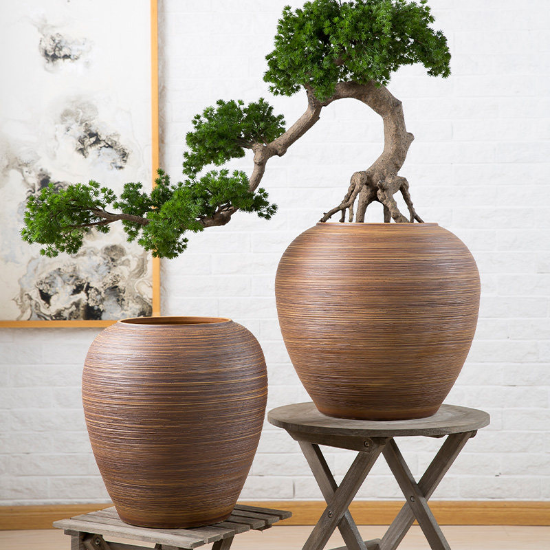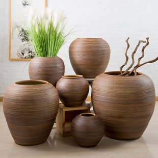 复古陶罐落地大花瓶户外摆件中式 饰品插花干花粗陶瓷瓶 客厅酒店装