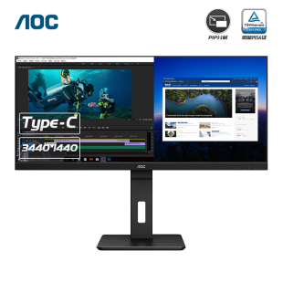 AOC 34英寸准4K高清IPS带鱼屏商用电脑显示器竖屏壁挂32 U34P2C