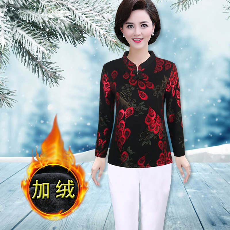 宽松加绒加厚保暖打底衫 韩版 t恤女春秋上衣2020中老年秋冬装 长袖